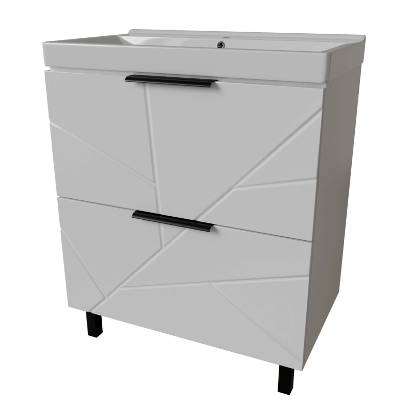 Серия "Гранд" - это ультрасовременная коллекция мебели для ванной комнаты. Рельефный фасад, образованным геометрической фрезеровкой, создает интересный эффект, делает мебель оригинальной, а интерьер ванной комнаты уникальным. Нейтральный серый цвет в сочетании с необычной фактурой фасада - это свежее веяние в дизайне интерьера, которое еще долгое время будет популярным.