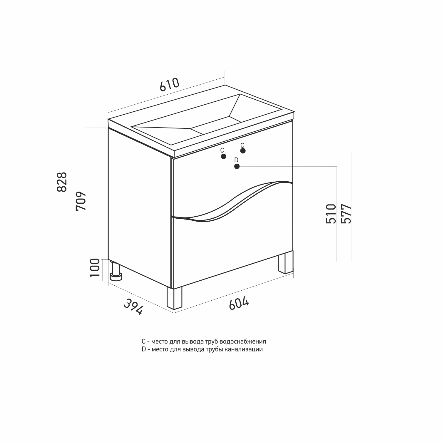 Тумба с раковиной Mixline Лайф 60 напольный |