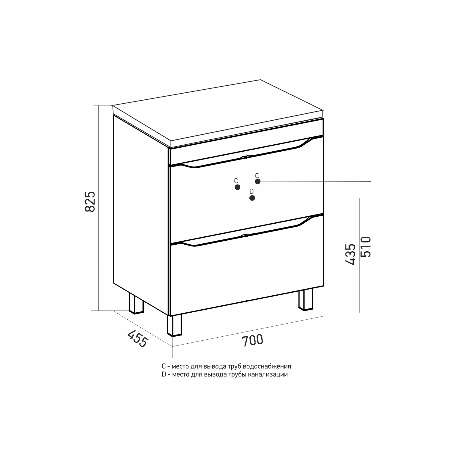 Тумба с раковиной Mixline Лайн 70 напольная, 2 ящика |