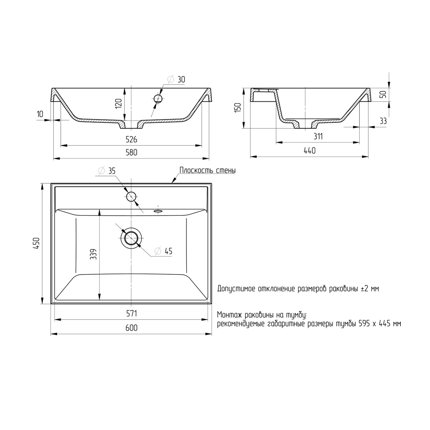 Тумба с раковиной Mixline Орион 60 напольная, белый |