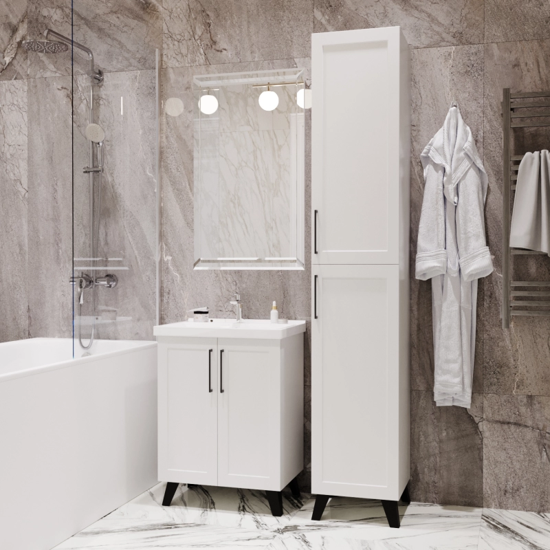 Тумба с раковиной Mixline Риф 60 напольная, белый, 2 дверцы |