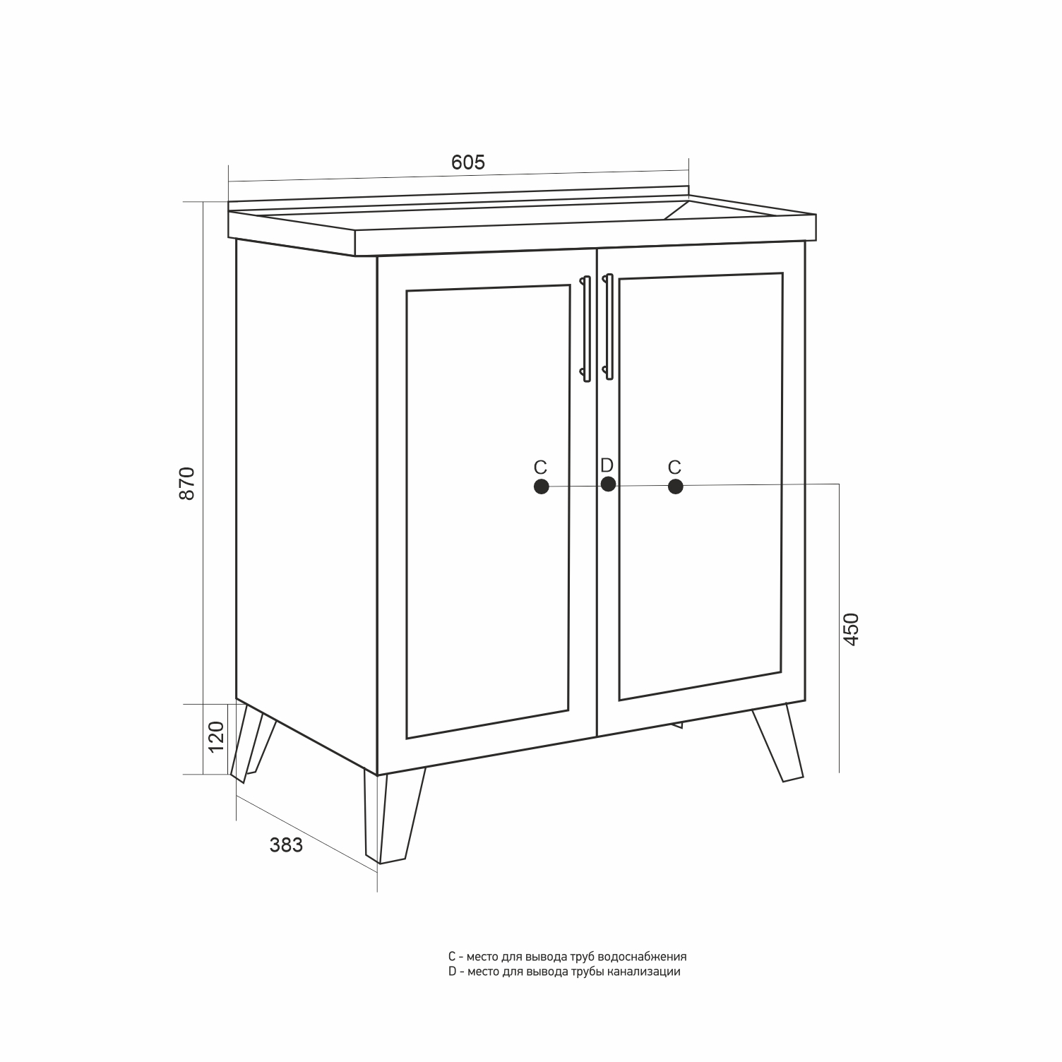 Тумба с раковиной Mixline Риф 60 напольная, белый, 2 дверцы