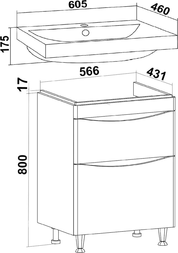 Тумба с раковиной Runo Афина 60