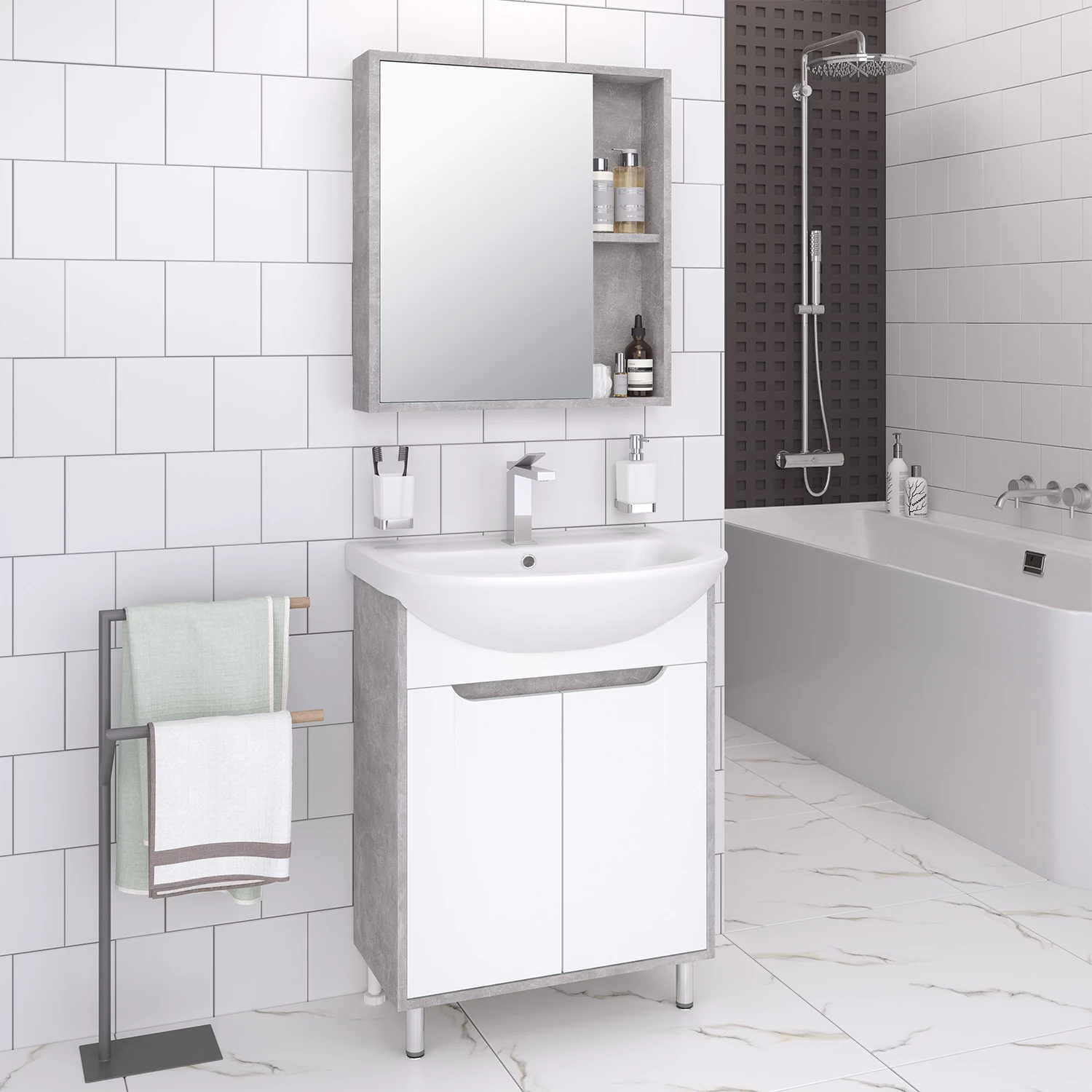Тумба с раковиной Runo Эко 60 серый бетон |