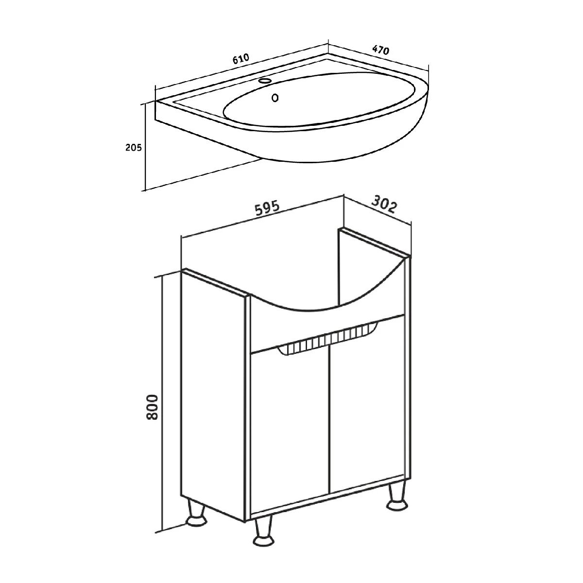 Тумба с раковиной Runo Эко 60 железный камень |