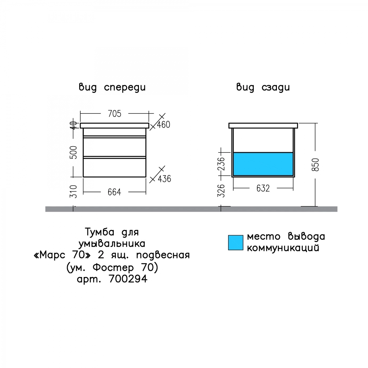 Тумба с раковиной СанТа Марс 70 подвесная, 2 ящика, фостер |