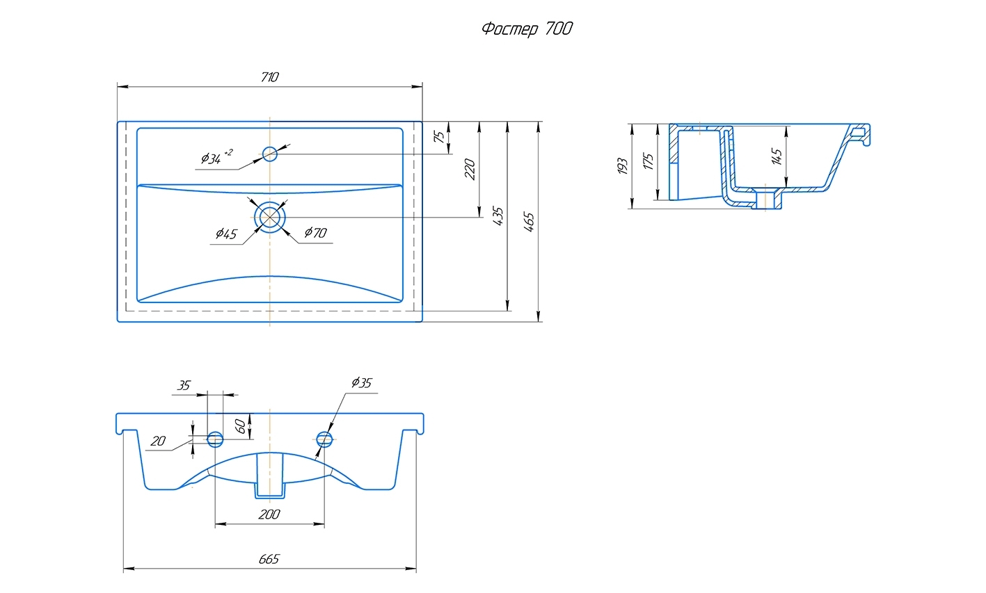 Тумба с раковиной СанТа Марс 70 подвесная, 2 ящика, фостер