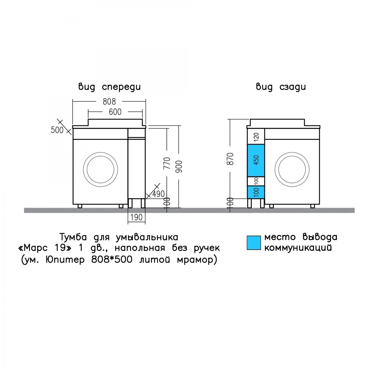 Тумба с раковиной СанТа Марс 80 R светлая, напольная, с кронштейном |