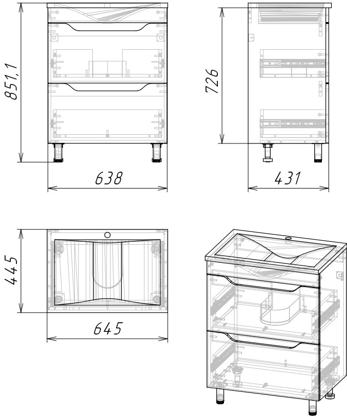 64.5x44.6x85 см