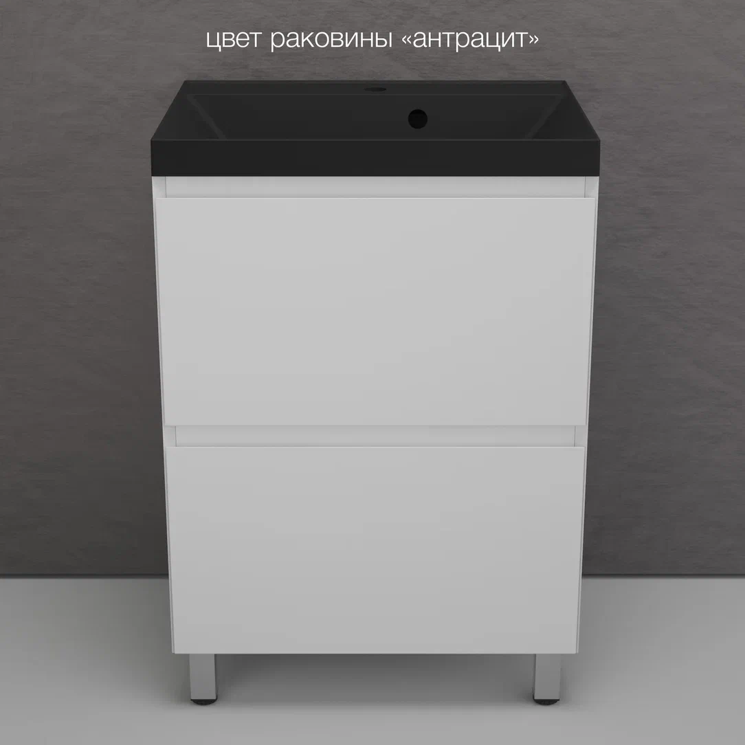 Тумба с раковиной Style Line Манхэттен 60 напольная, белый матовый, Asti антрацит |
