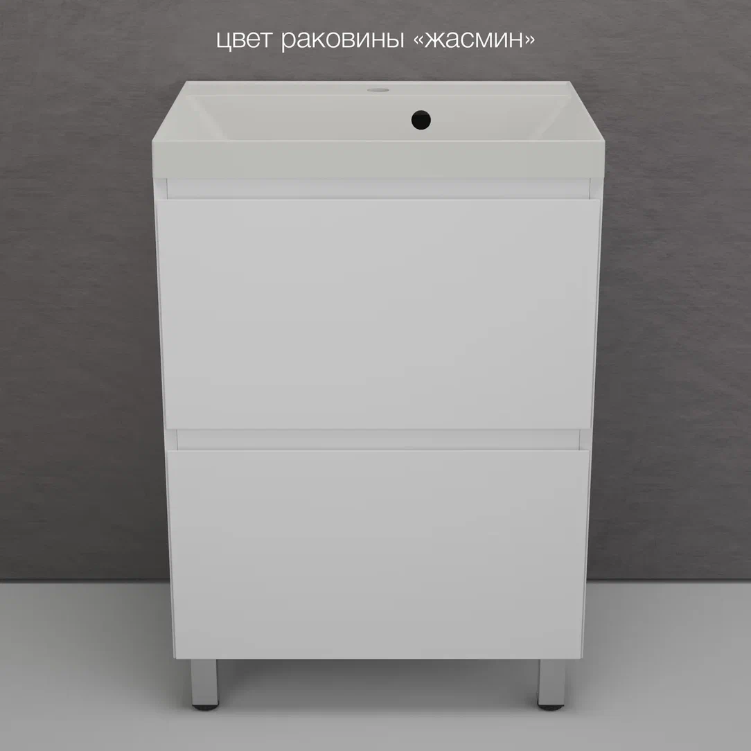 Тумба с раковиной Style Line Манхэттен 60 напольная, белый матовый, Asti жасмин |