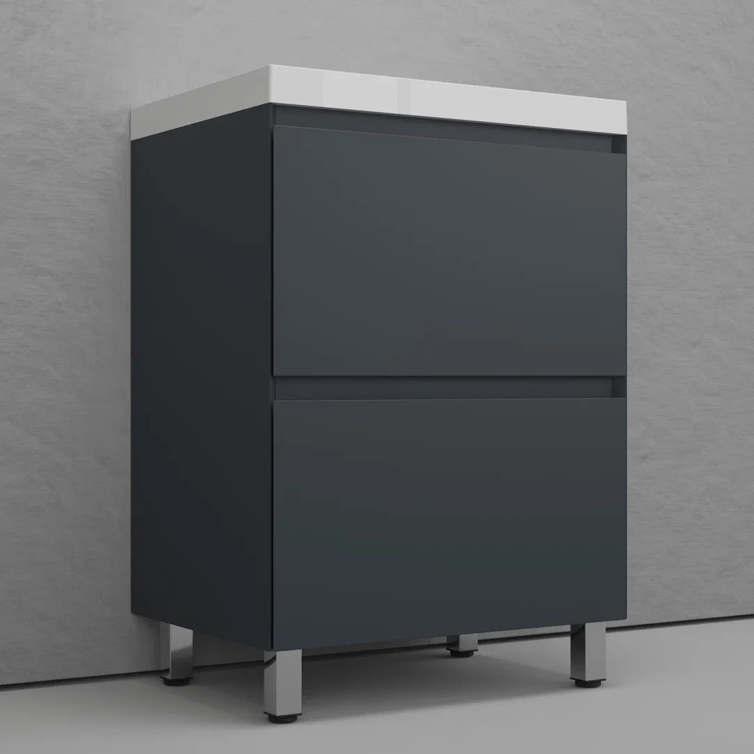 Тумба с раковиной Style Line Манхэттен 60 напольная, графит, Asti белая |