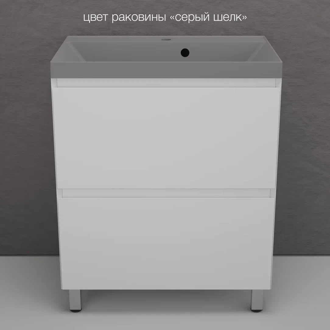 Тумба с раковиной Style Line Манхэттен 70 напольная, белый матовый, Asti серый шелк