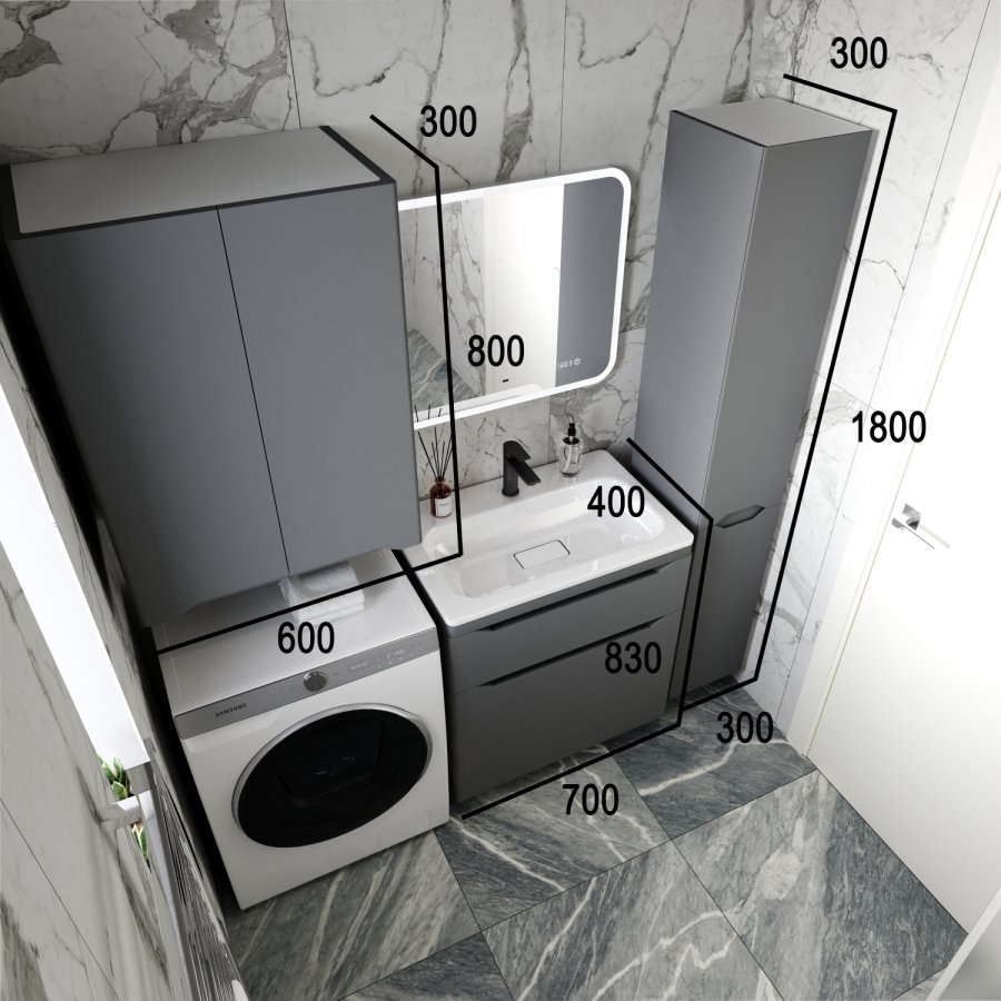Тумба с раковиной Style Line Марелла 70 напольная, серый матовый |