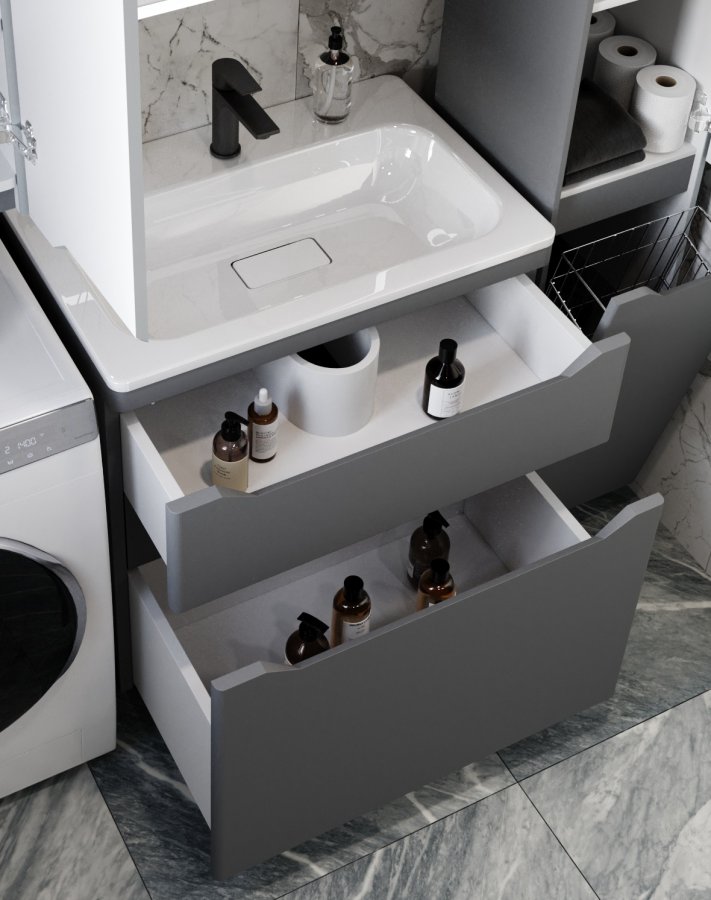 Тумба с раковиной Style Line Марелла 70 напольная, серый матовый