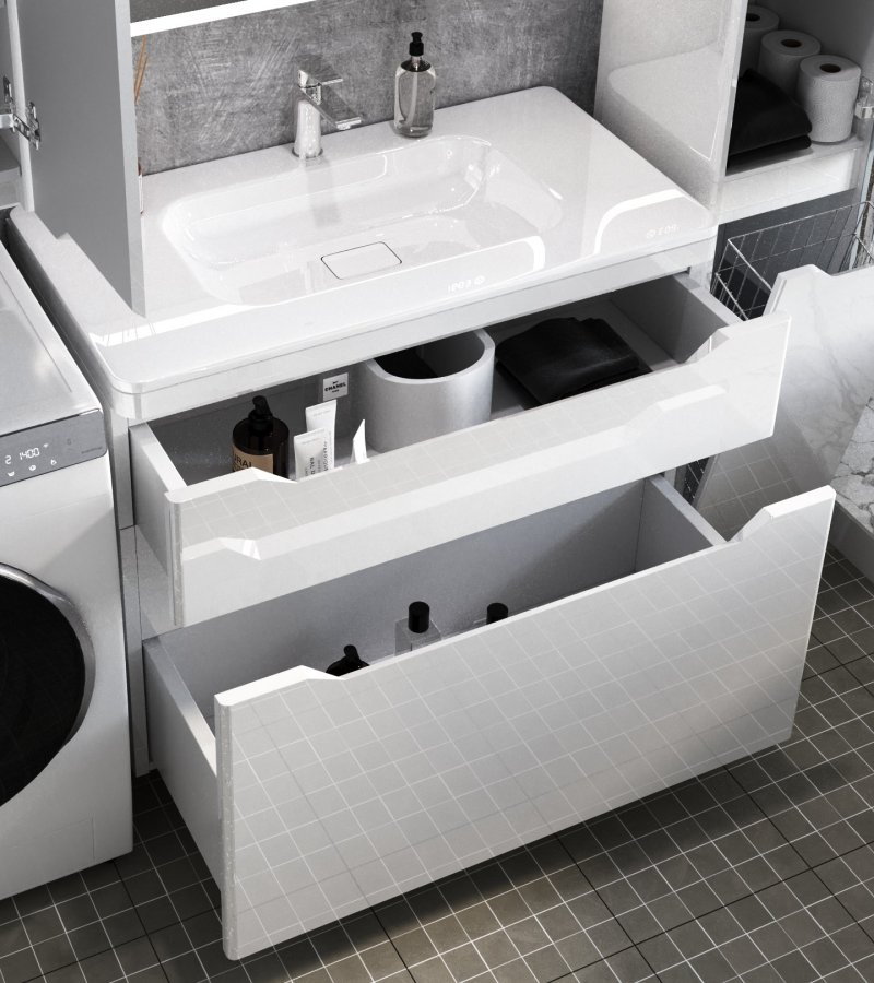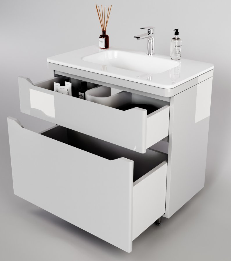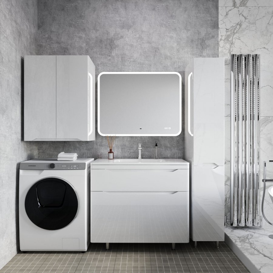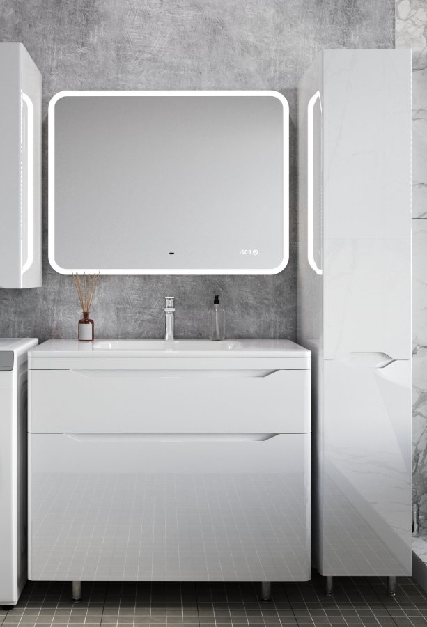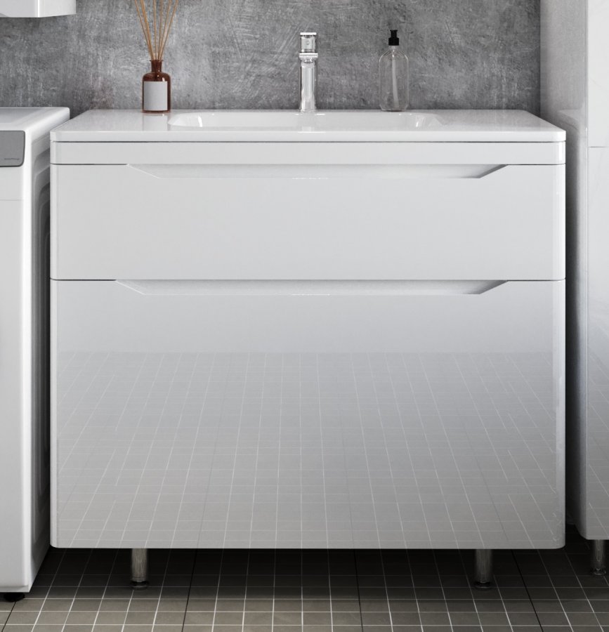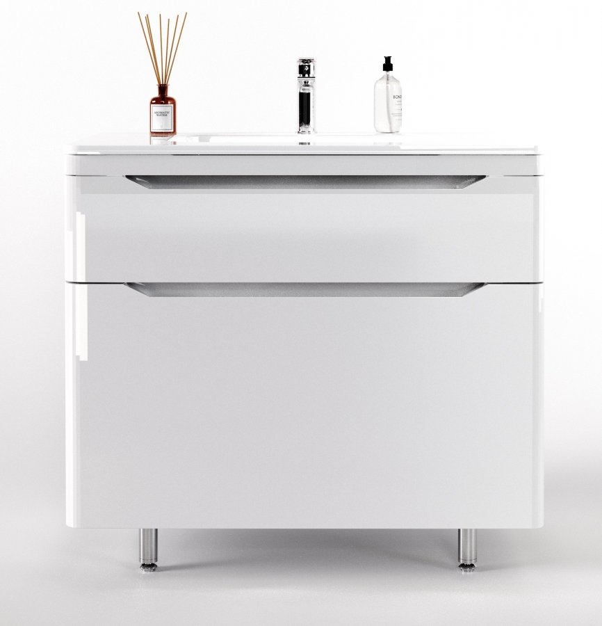 Тумба с раковиной Style Line Марелла 90 напольная, белый глянец