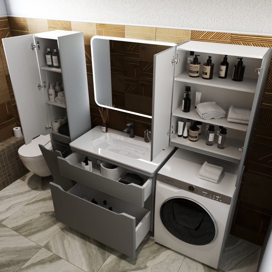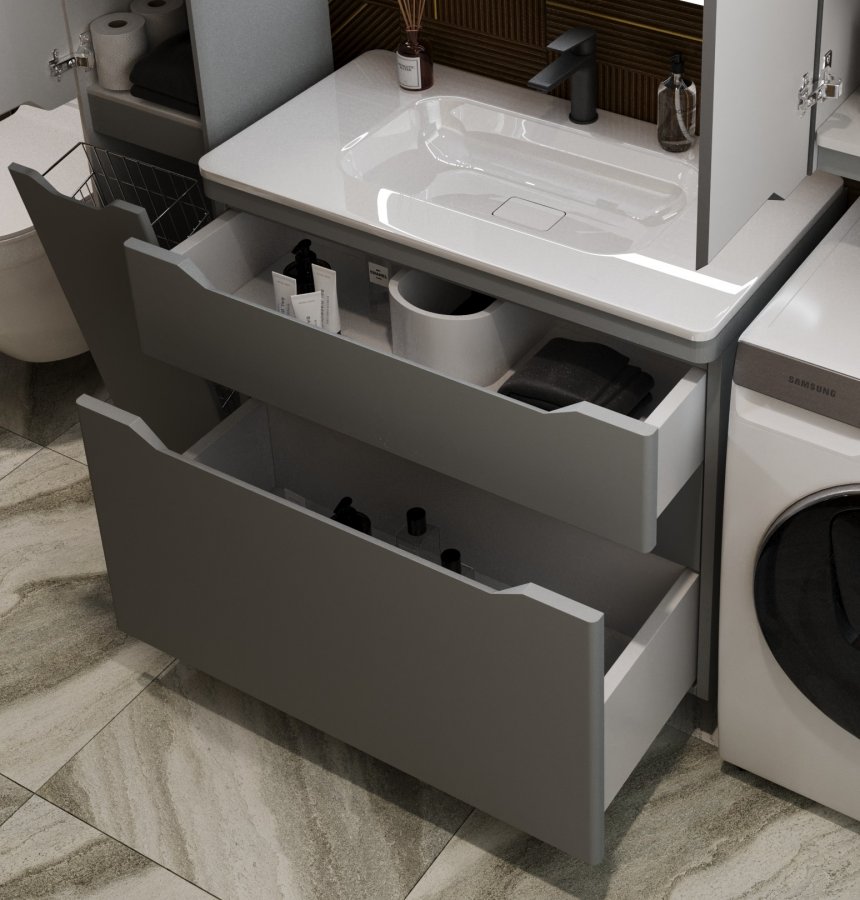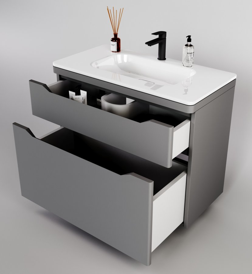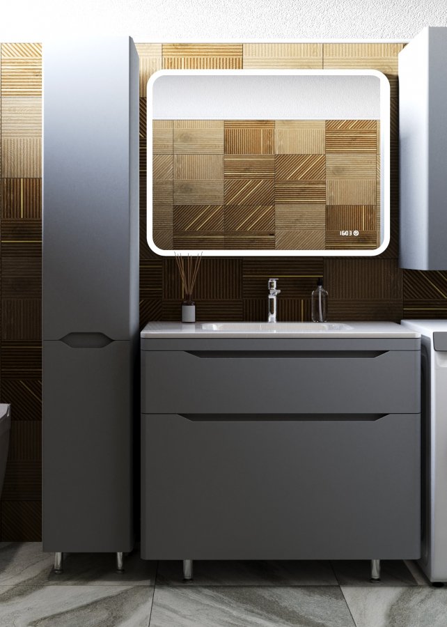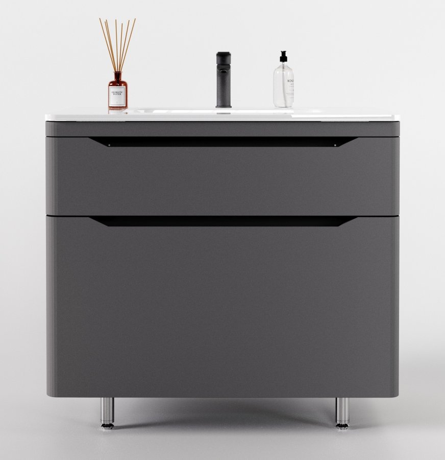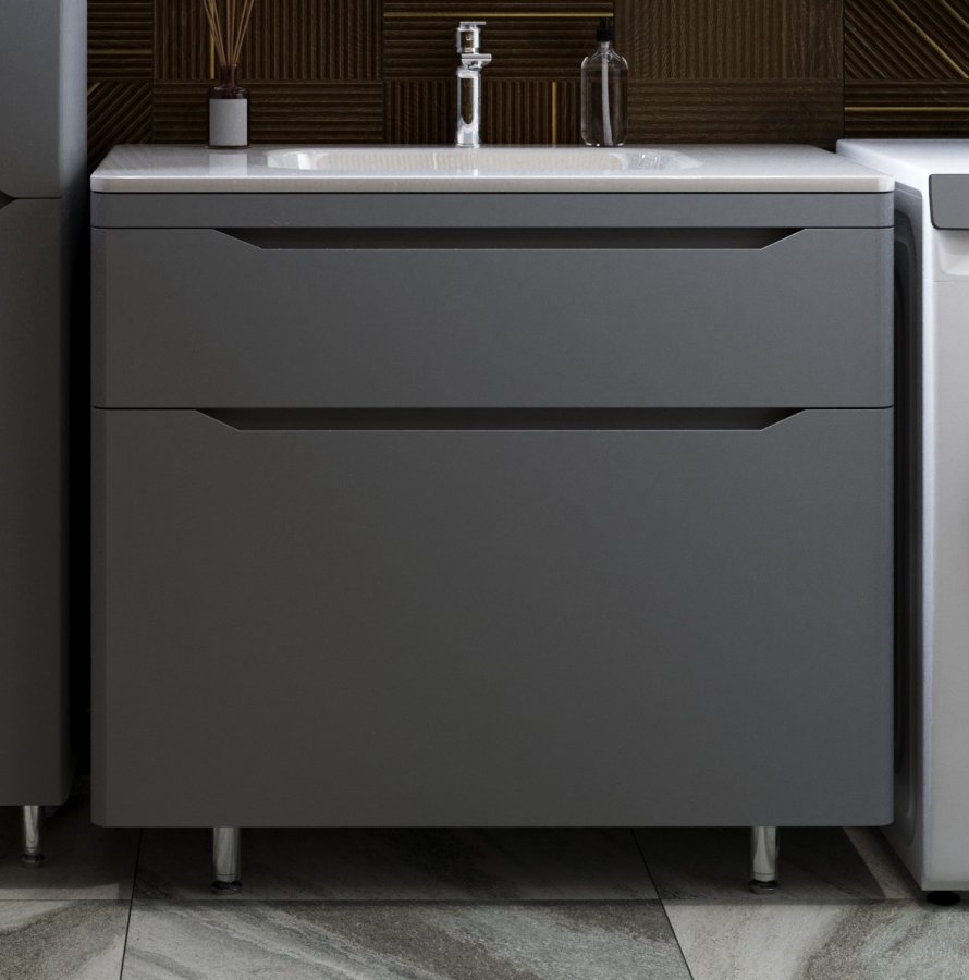 Тумба с раковиной Style Line Марелла 90 напольная, серый матовый
