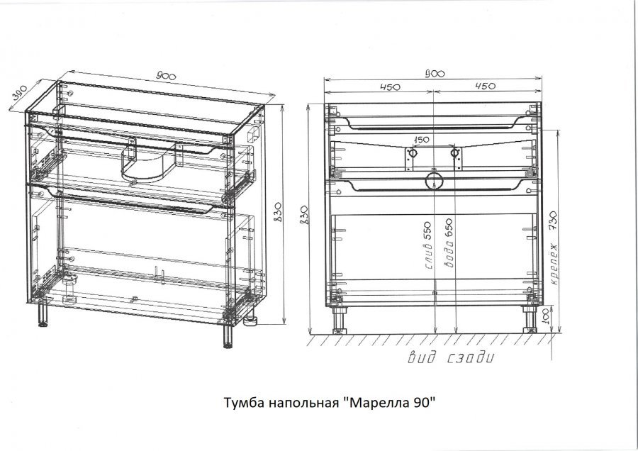 Тумба с раковиной Style Line Марелла 90 напольная, серый матовый |