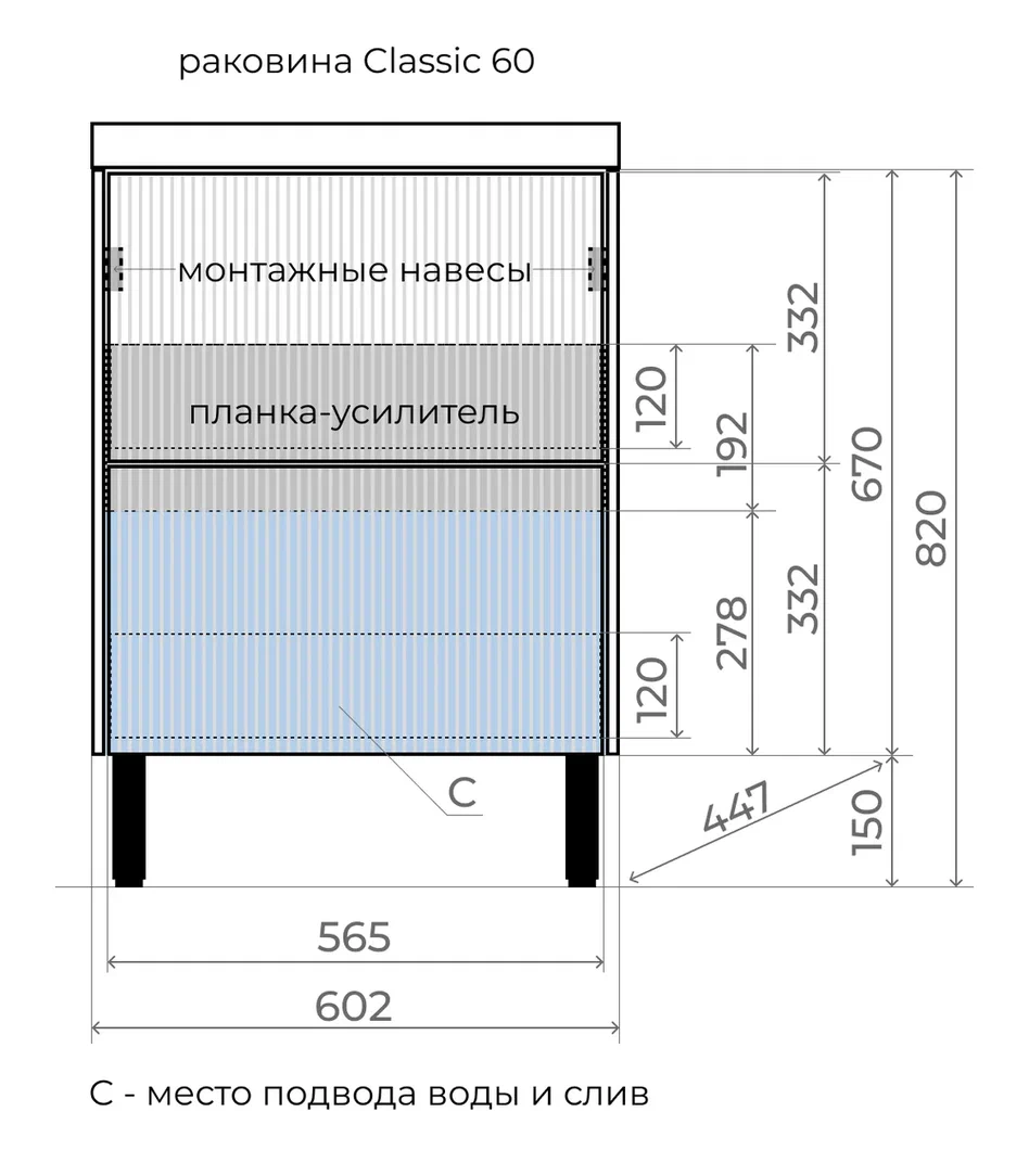 Тумба с раковиной Style Line Стокгольм 60 напольная, белый рифленый софт