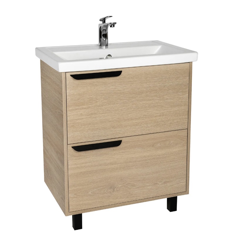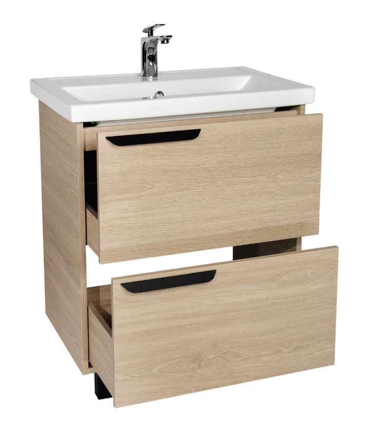 Тумба с раковиной VIANT Кельн 60 напольная, 2 ящика, светлое дерево |