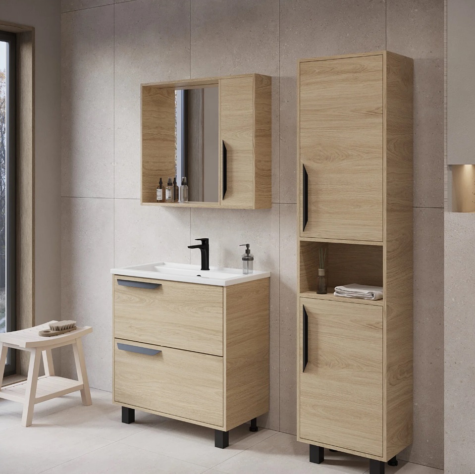 Тумба с раковиной VIANT Кельн 60 напольная, 2 ящика, светлое дерево