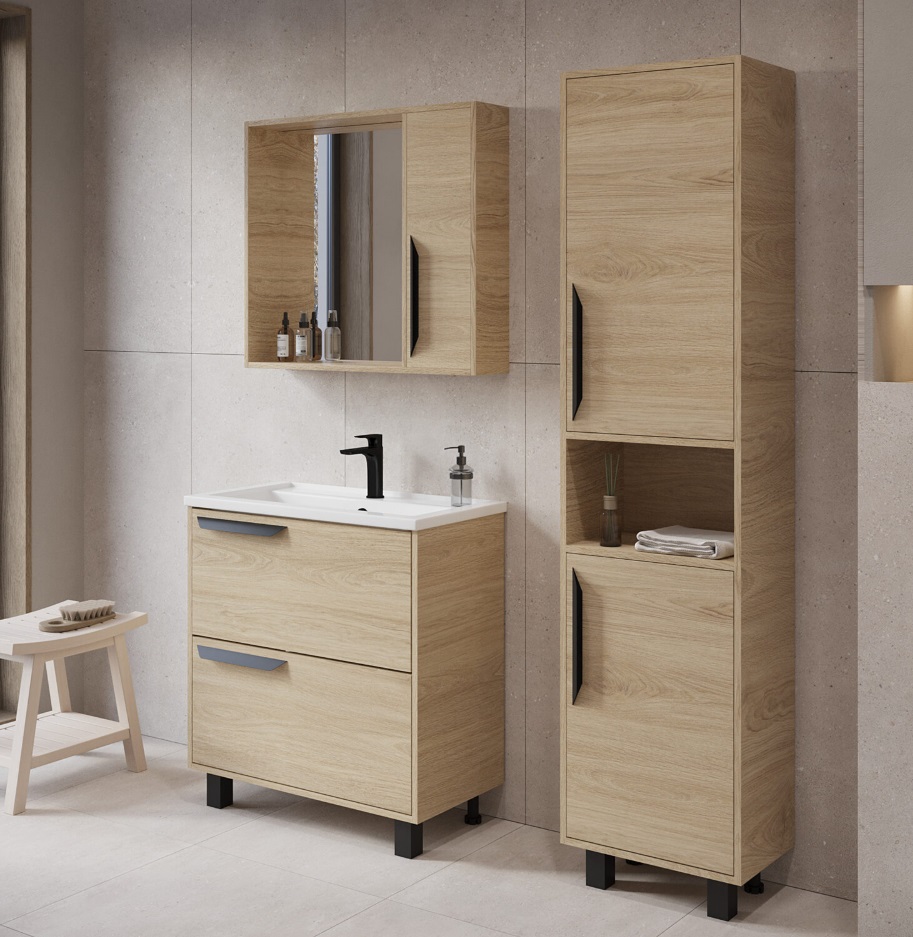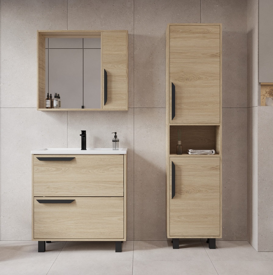 Тумба с раковиной VIANT Кельн 80 напольная, 2 ящика, светлое дерево |