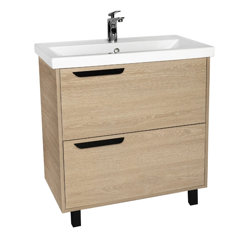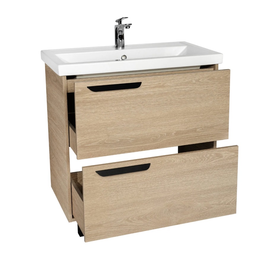 Тумба с раковиной VIANT Кельн 80 напольная, 2 ящика, светлое дерево
