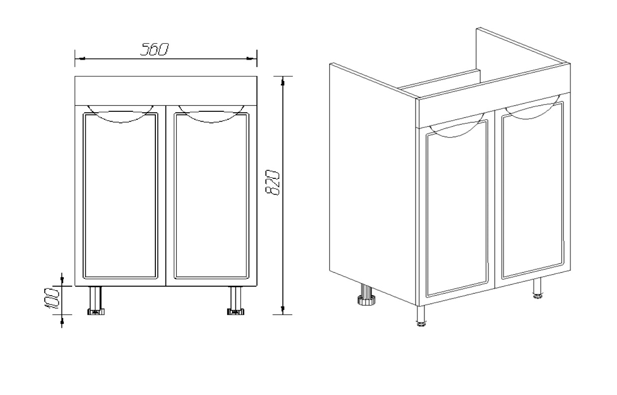 Тумба с раковиной VIANT Лима 60 напольная, 2 дверцы, белый |