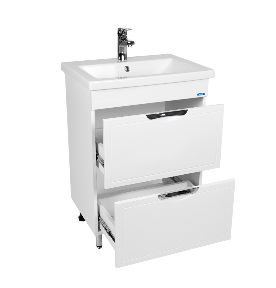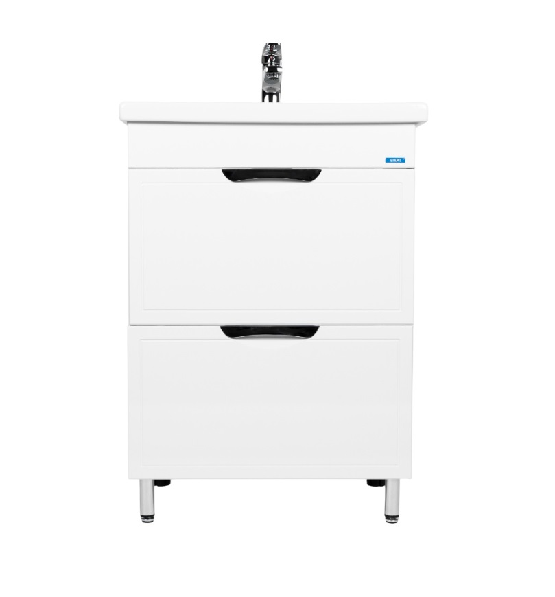 Тумба с раковиной VIANT Лима 70 напольная, 2 ящика, белый