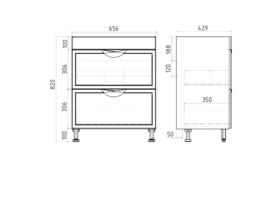 Тумба с раковиной VIANT Лима 70 напольная, 2 ящика, белый |