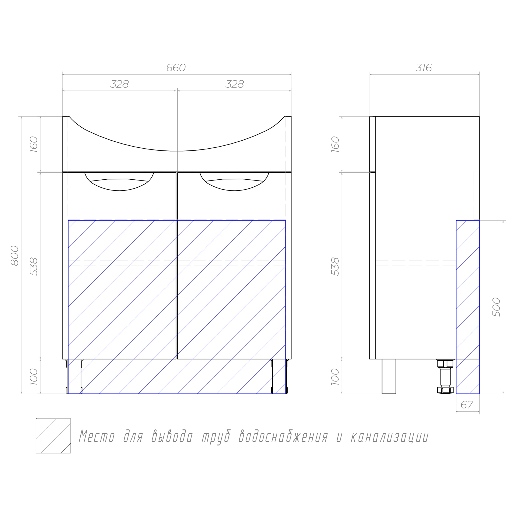 Тумба с раковиной Vigo Callao 70, 2 дверцы