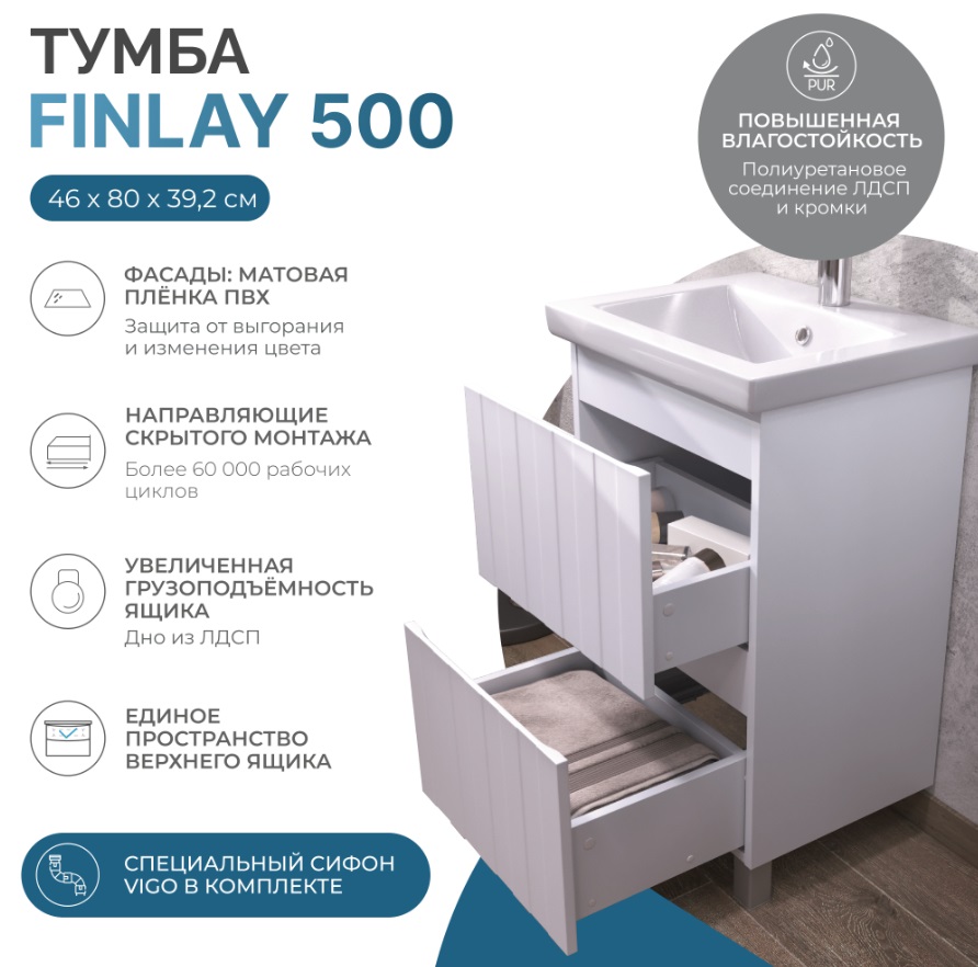 Тумба с раковиной Vigo Finlay 50 напольная |