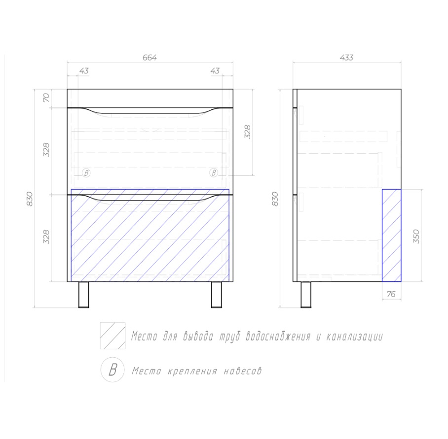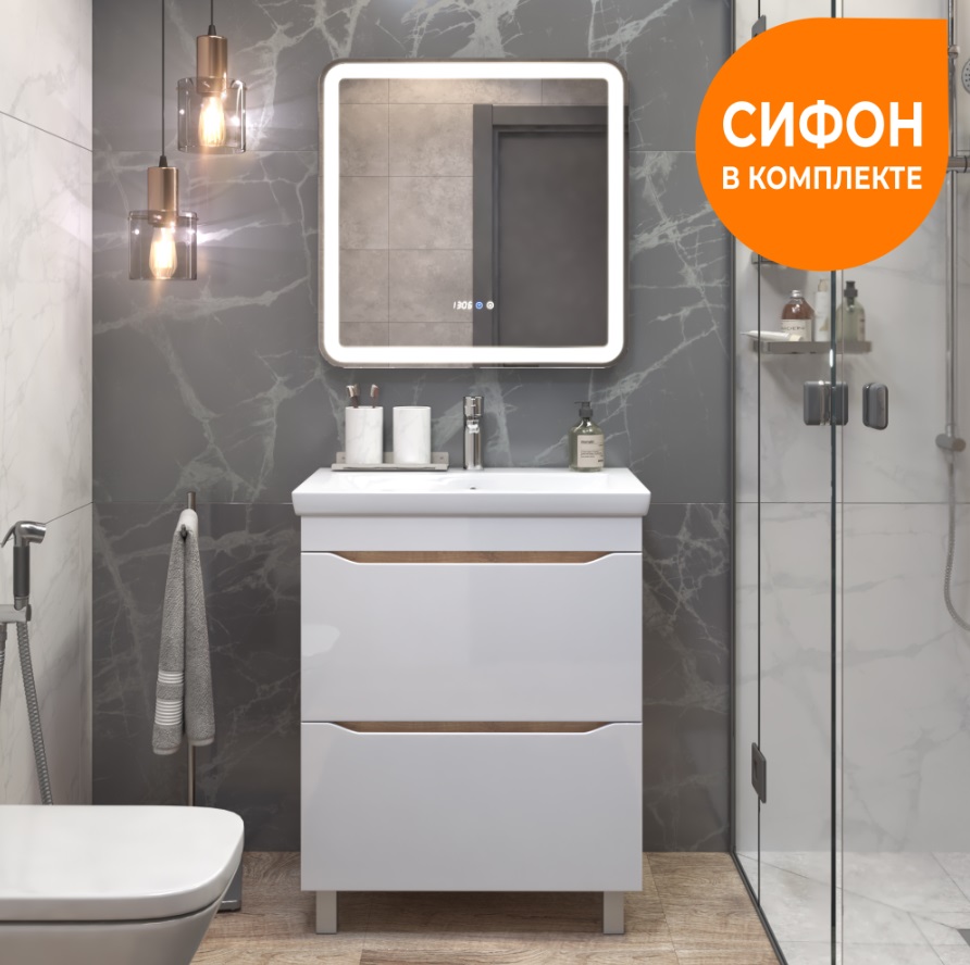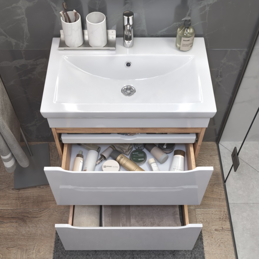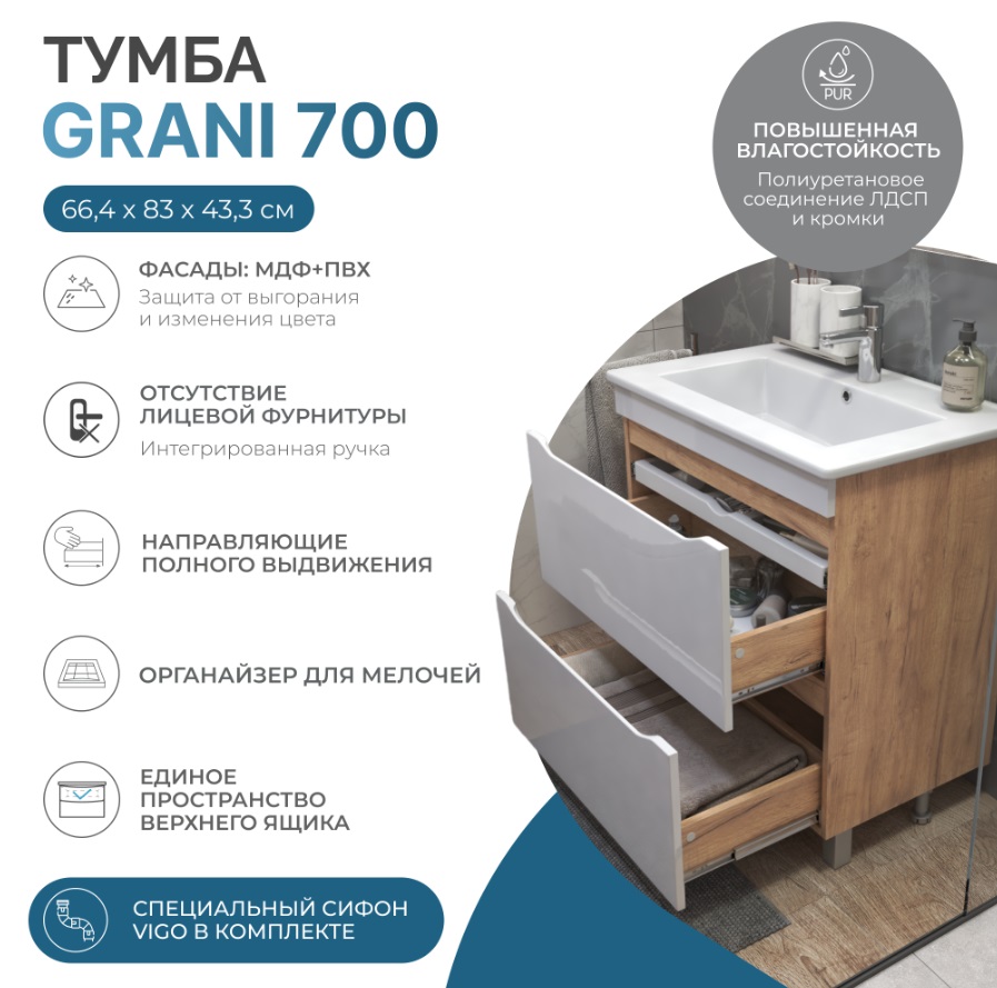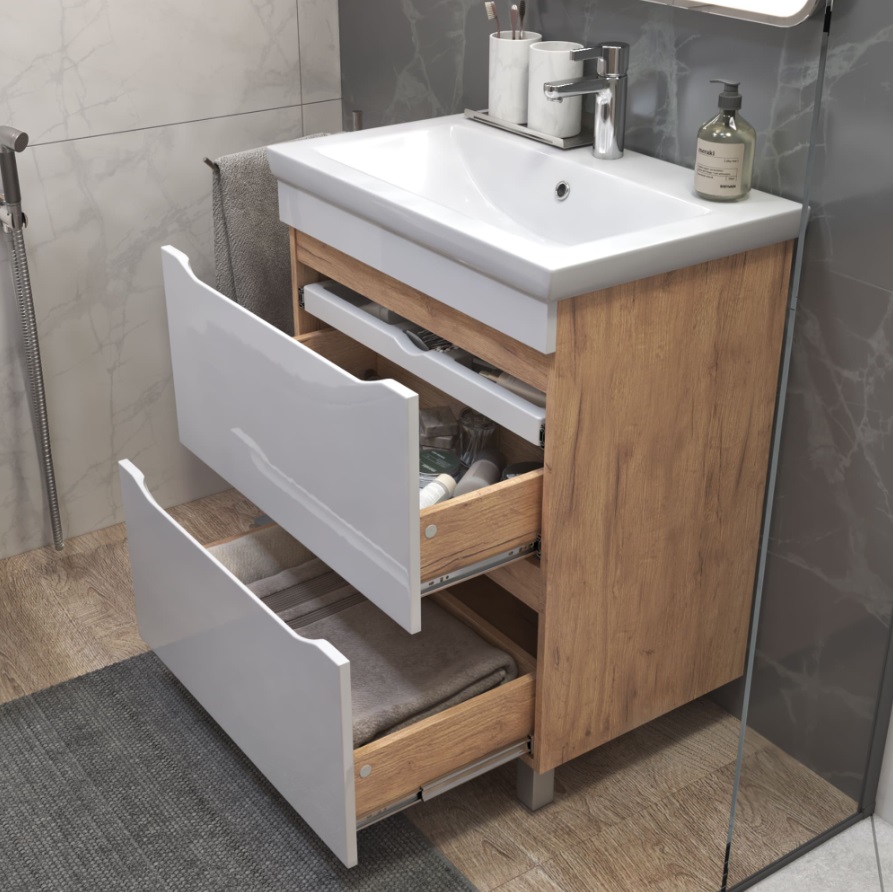 Тумба с раковиной Vigo Grani 70 напольная, 2 ящика, дуб золотой |
