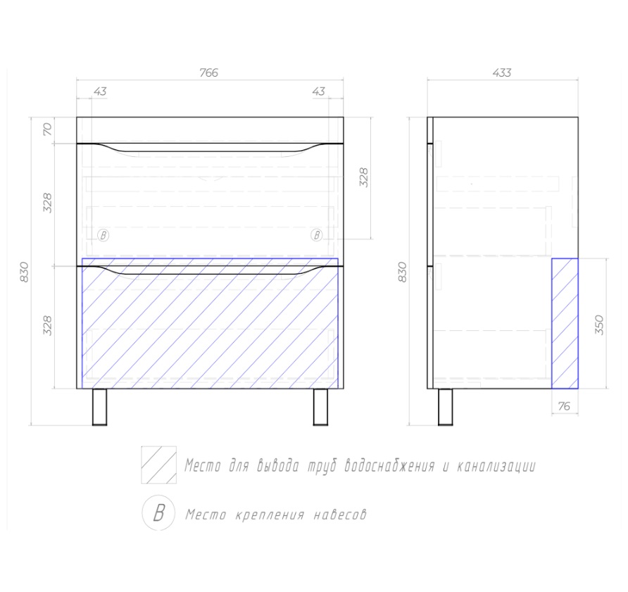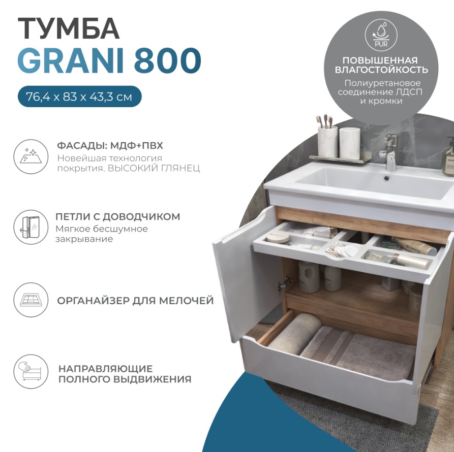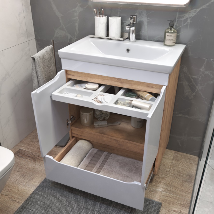 Тумба с раковиной Vigo Grani 80 напольная, 2 двери, 1 ящик, дуб золотой |