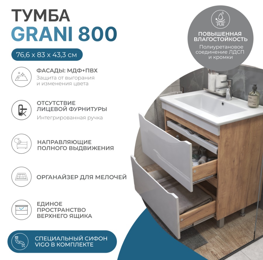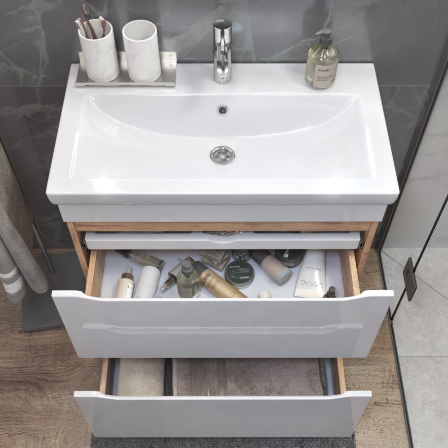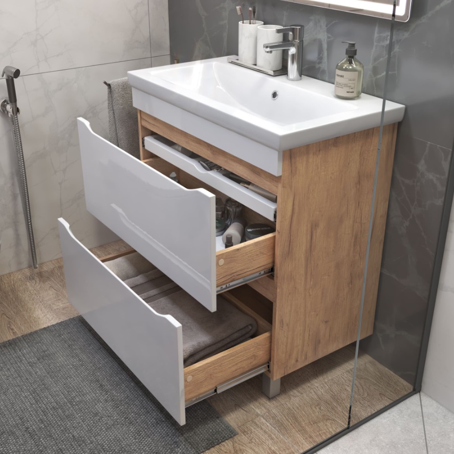 Тумба с раковиной Vigo Grani 80 напольная, 2 ящика, дуб золотой |