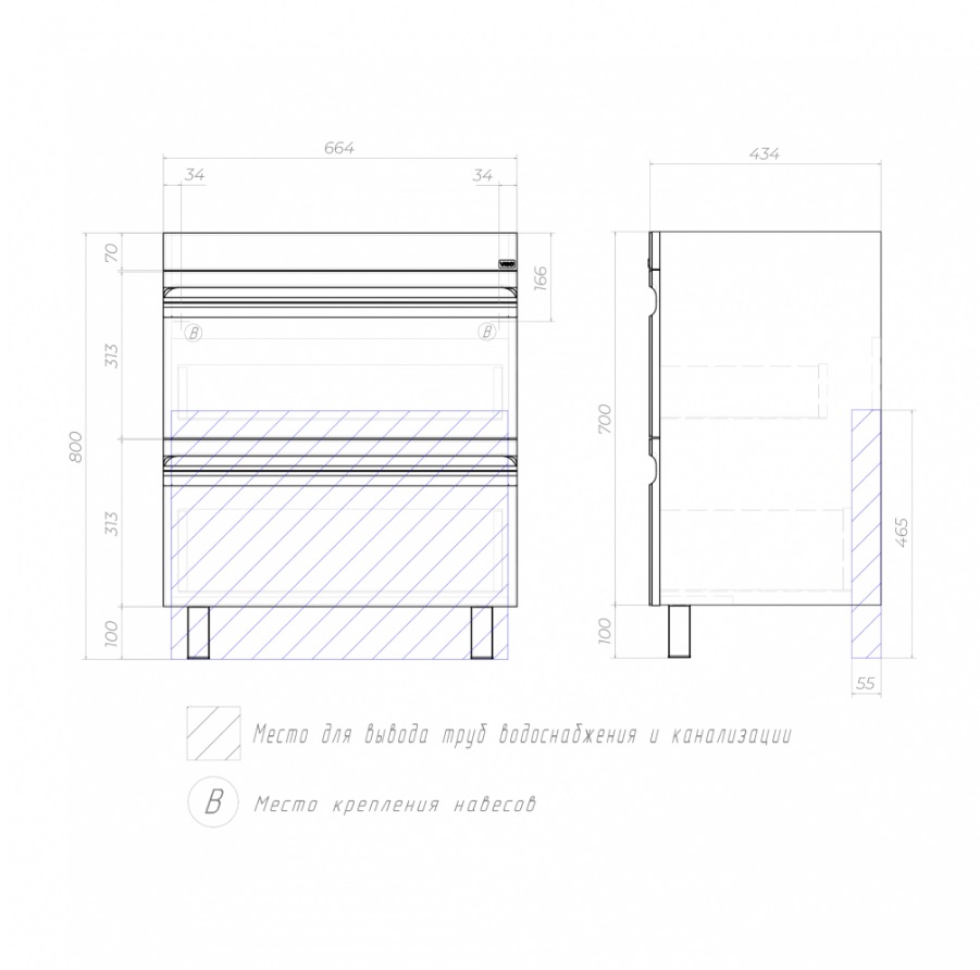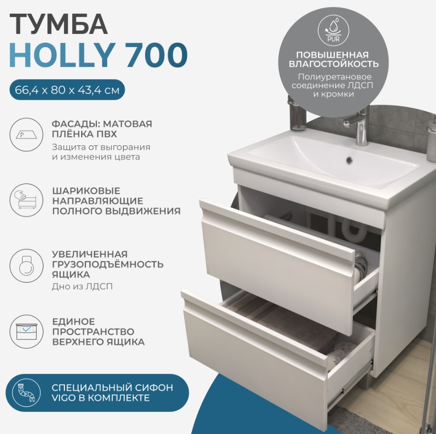Тумба с раковиной Vigo Holly 70 напольная