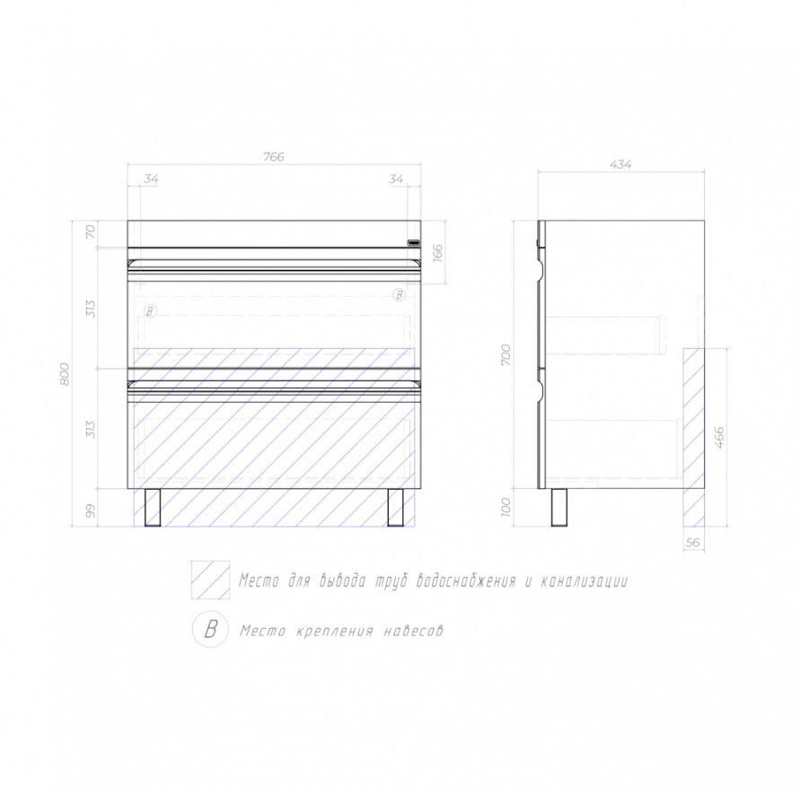 Тумба с раковиной Vigo Holly 80 напольная