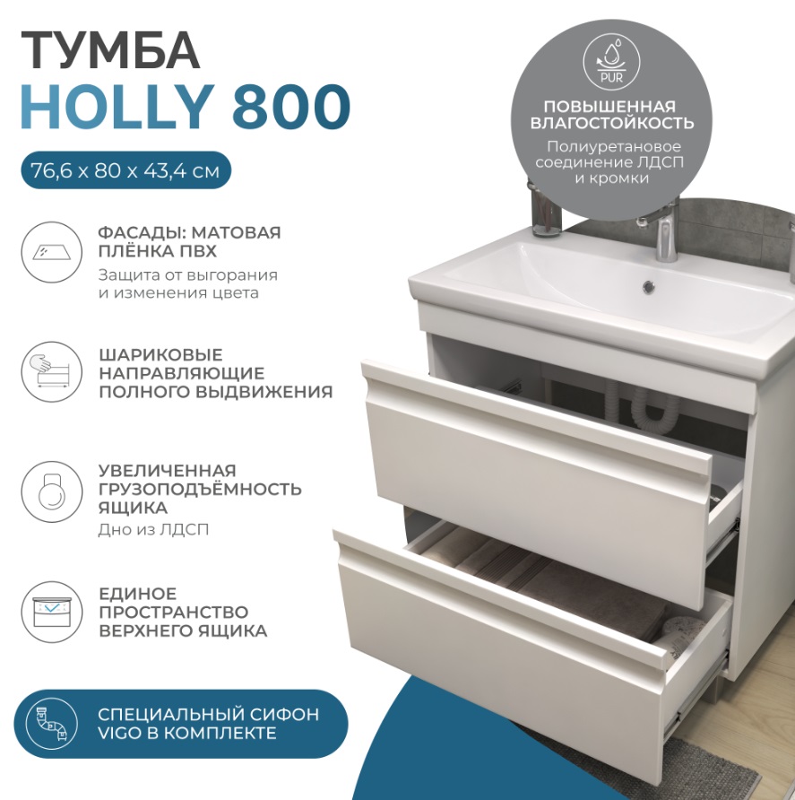Тумба с раковиной Vigo Holly 80 напольная |