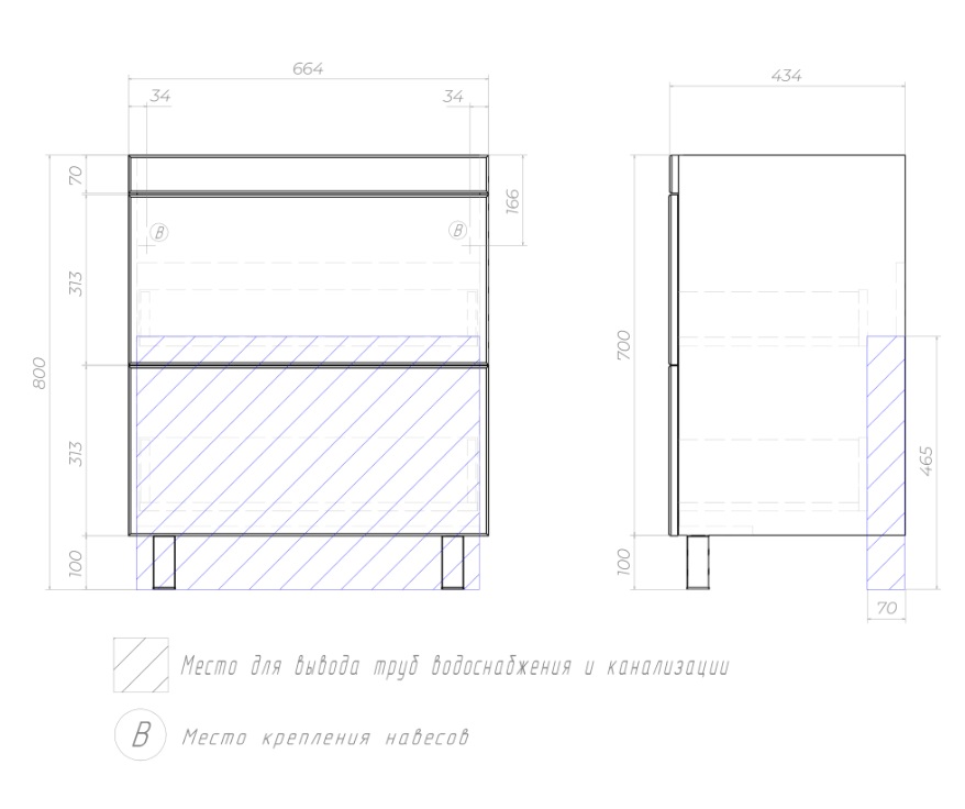 Тумба с раковиной Vigo Land 70 напольная |