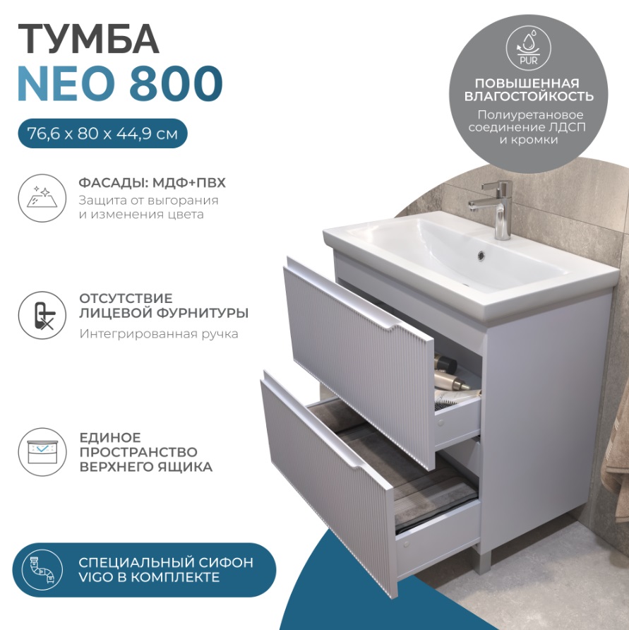 Тумба с раковиной Vigo Neo 80 напольная |