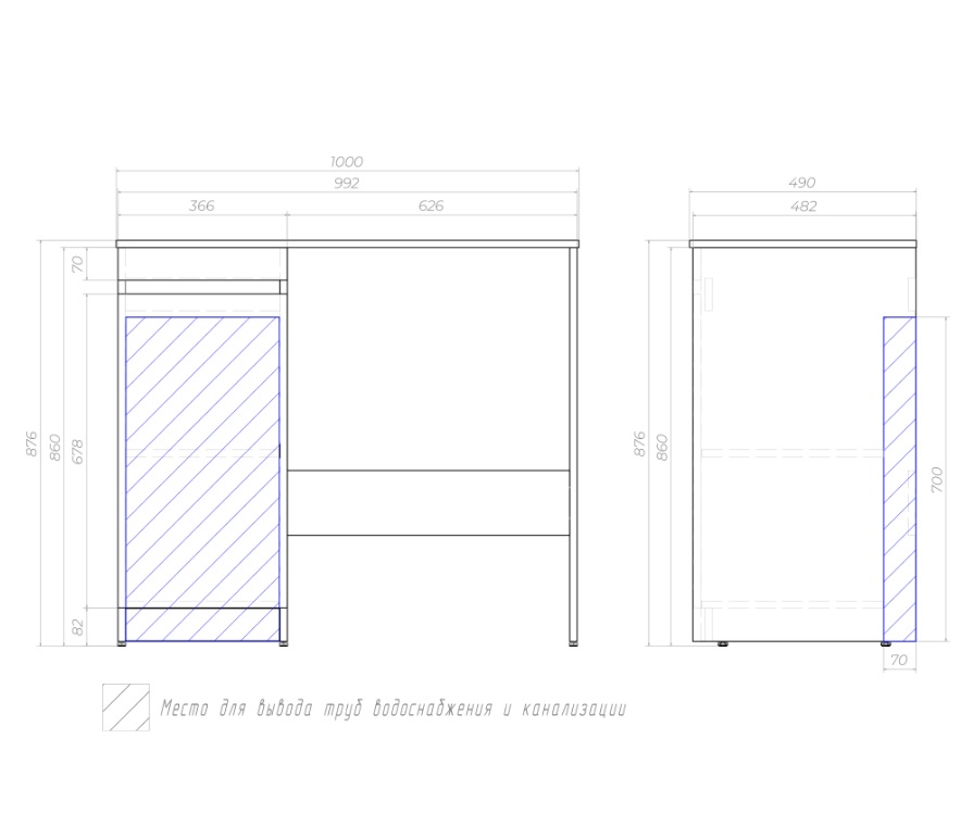 Тумба с раковиной Vigo Urban 100 для стиральной машины, напольная, 1 дверца |