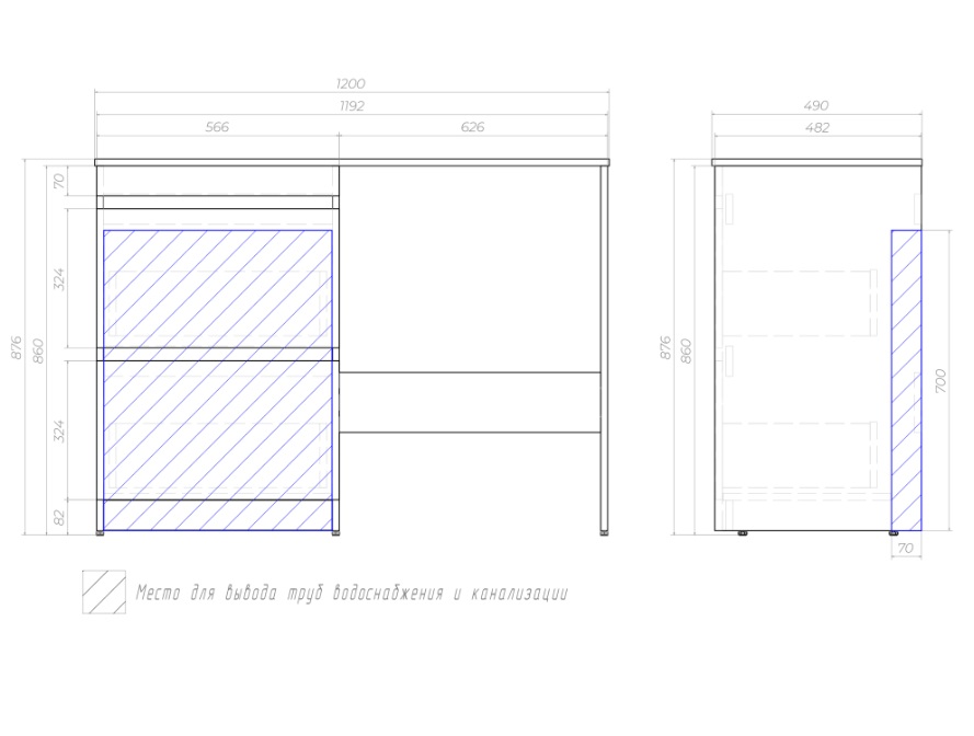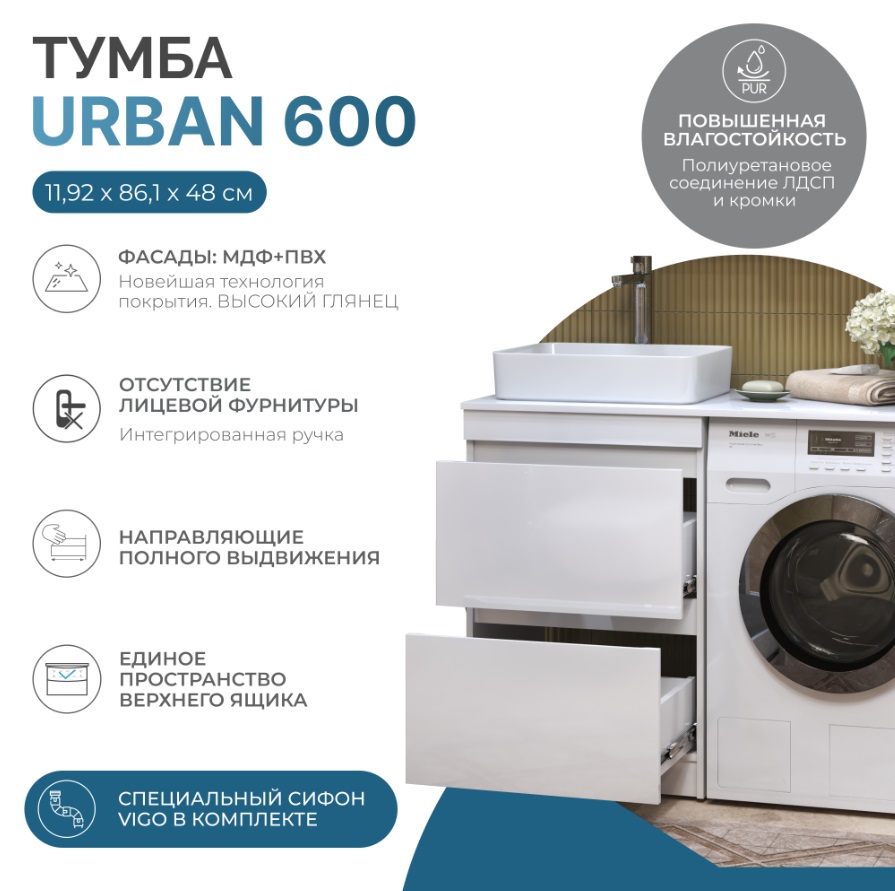 Тумба с раковиной Vigo Urban 120 для стиральной машины, напольная, 2 ящика |