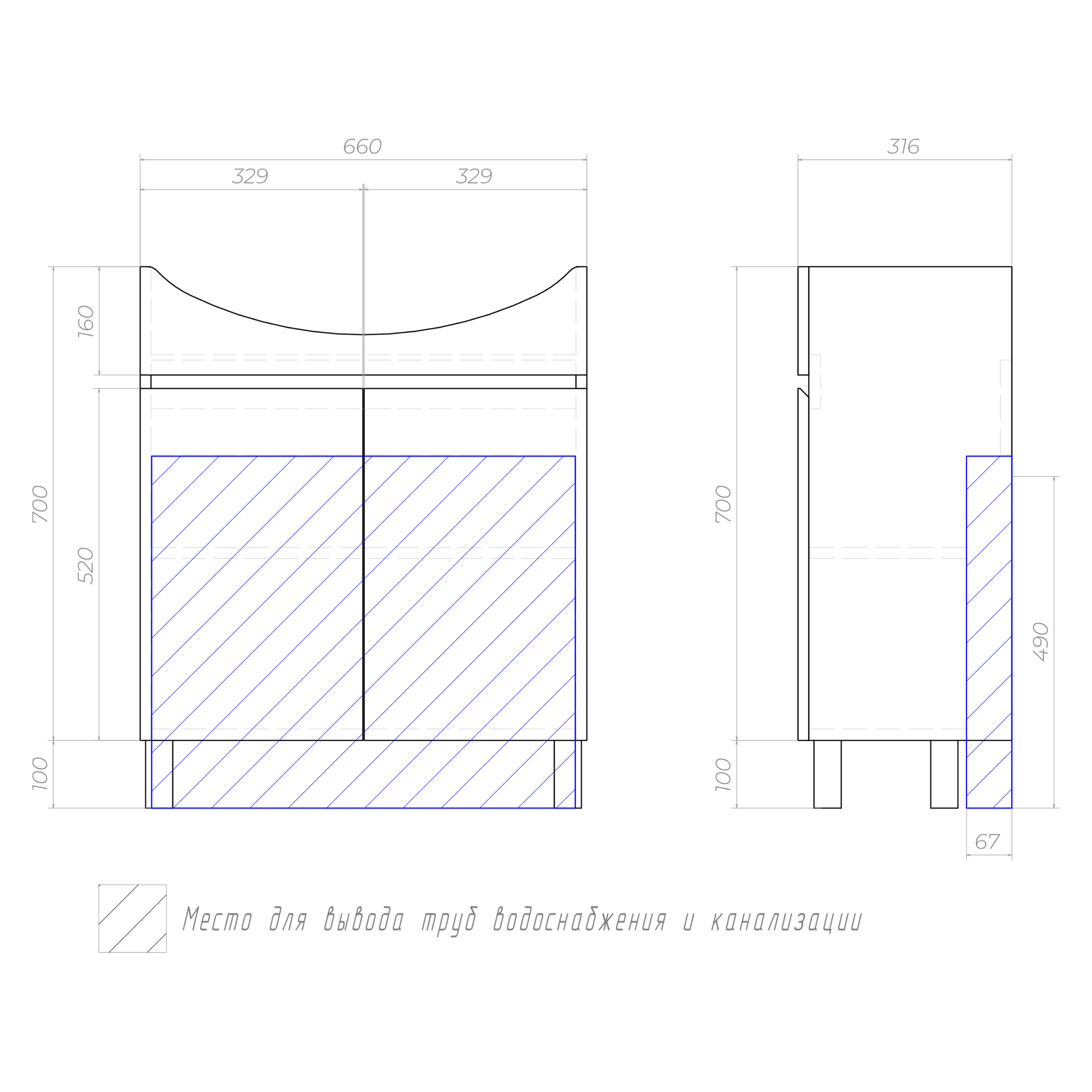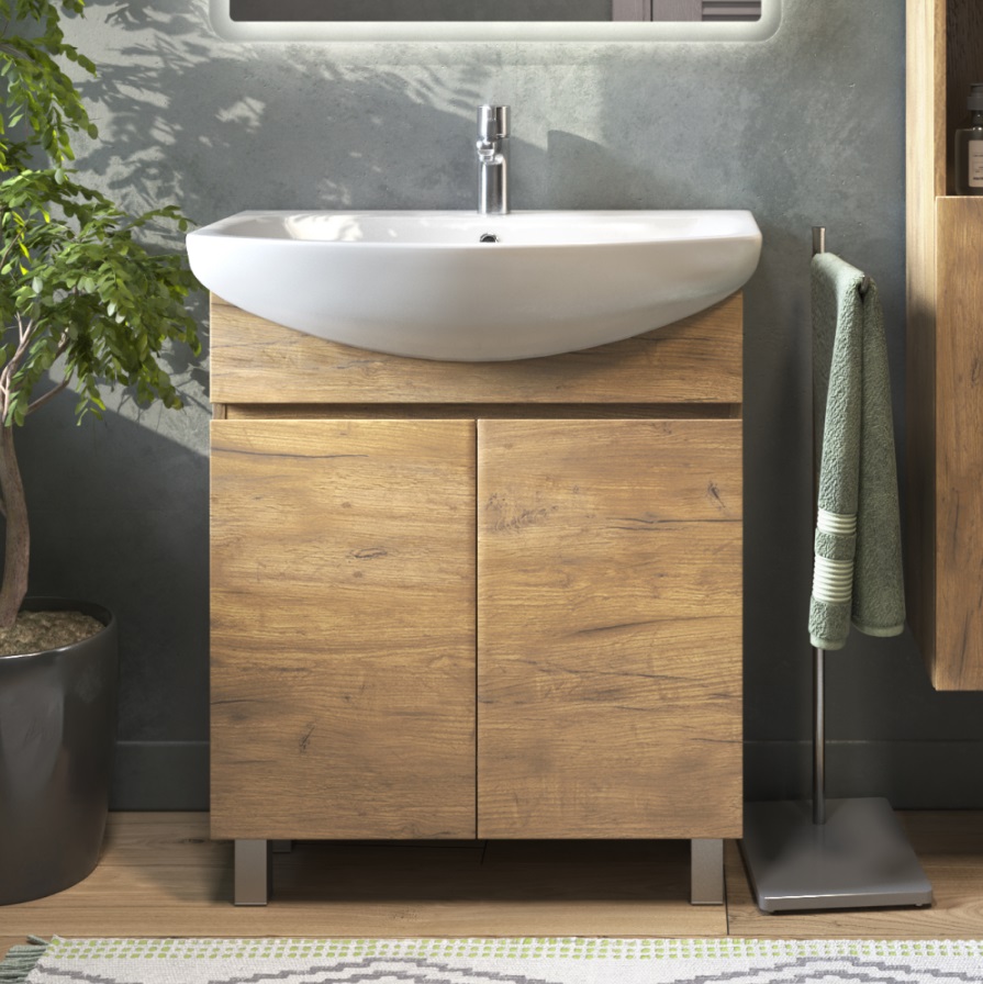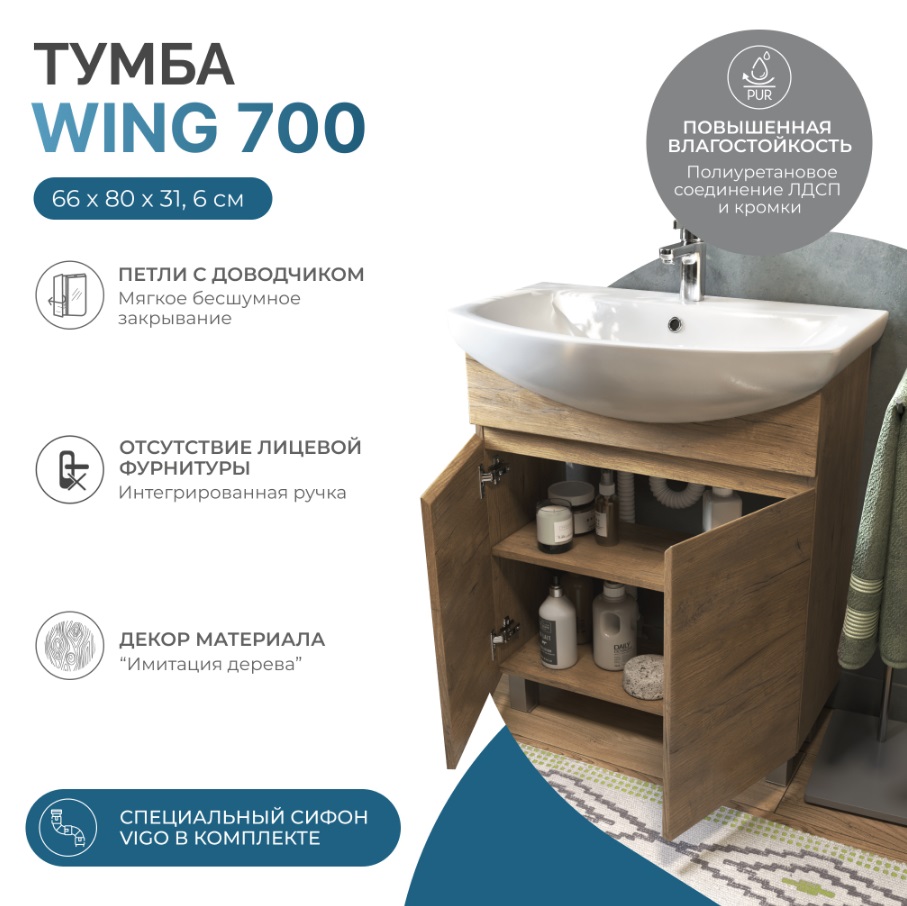 Тумба с раковиной Vigo Wing 70 напольная, 2 дверцы, дуб золотой |