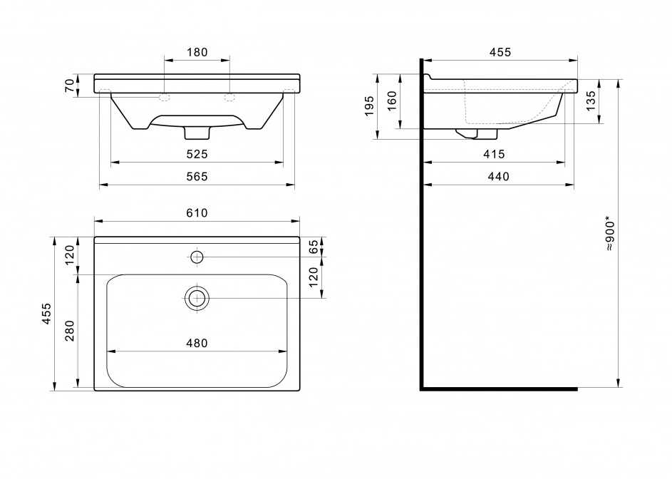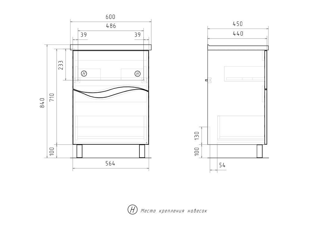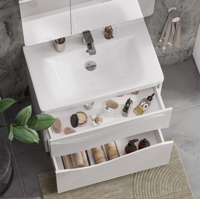Тумба с раковиной Volna 60 напольный, 2 ящика, белый