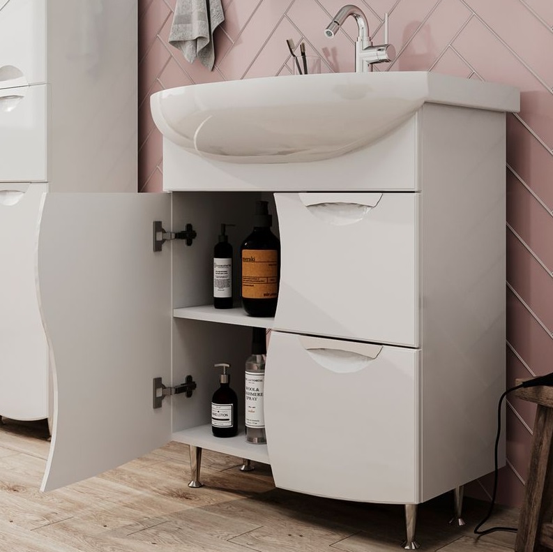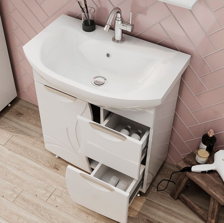 Тумба с раковиной Volna Adel 70 напольный, 2 ящика, 1 дверца, белый |