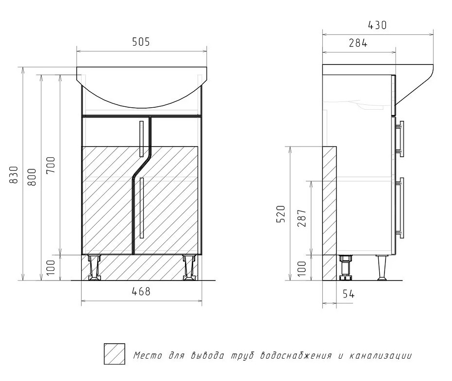 Тумба с раковиной Volna Bruno 50 напольный, 2 дверцы, белый |