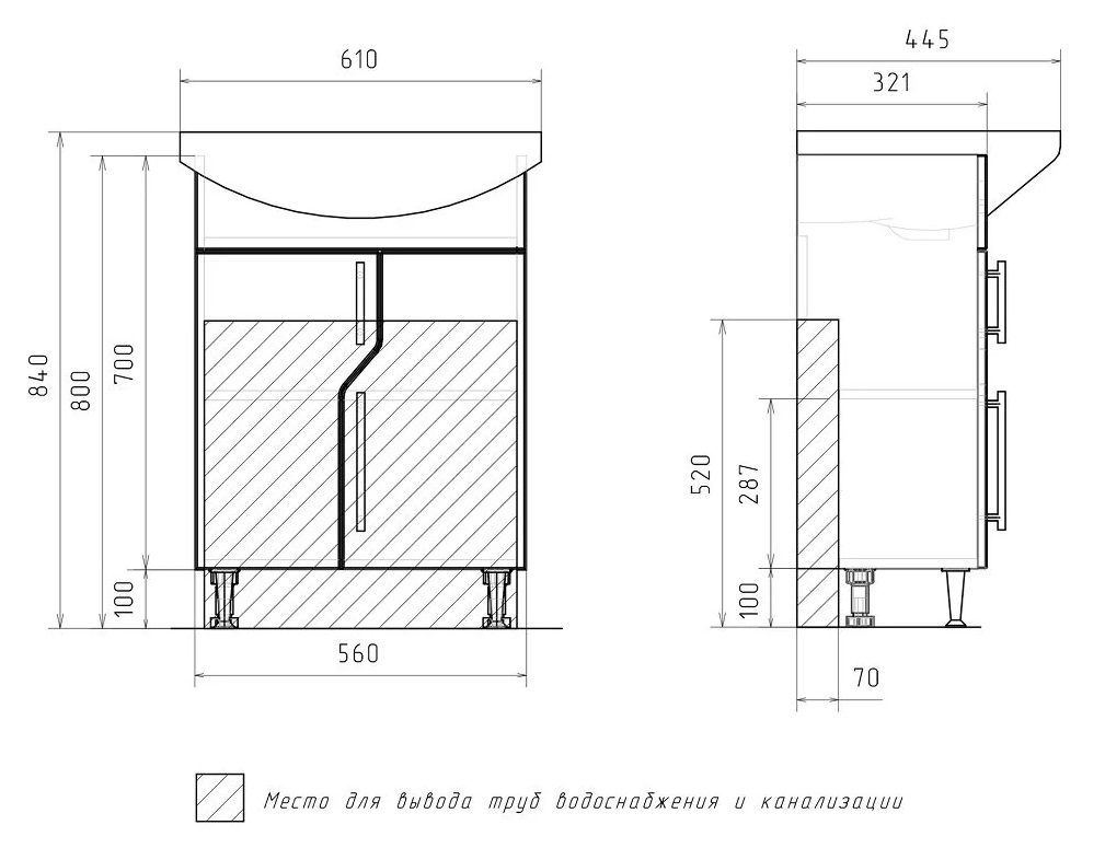 Тумба с раковиной Volna Bruno 60 напольный, 2 дверцы, белый |