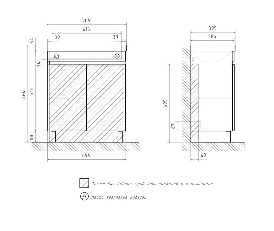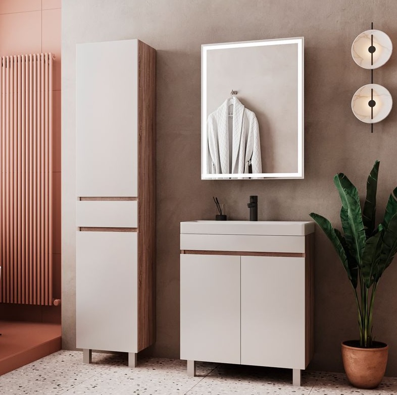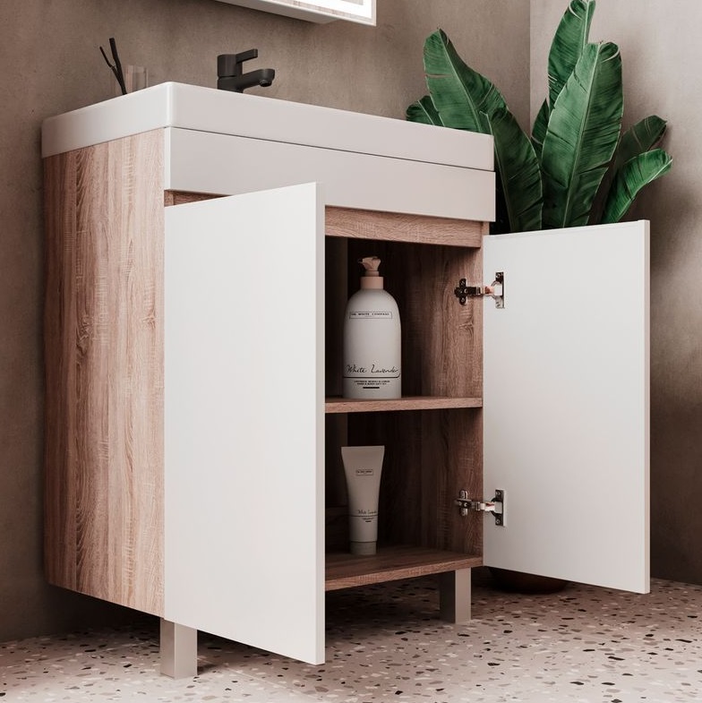 Тумба с раковиной Volna Conty 70 напольный, 2 дверцы, белый, дуб сонома |