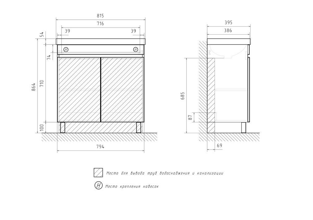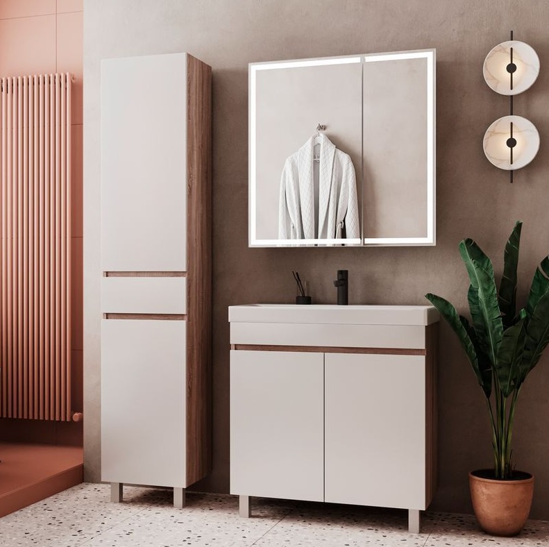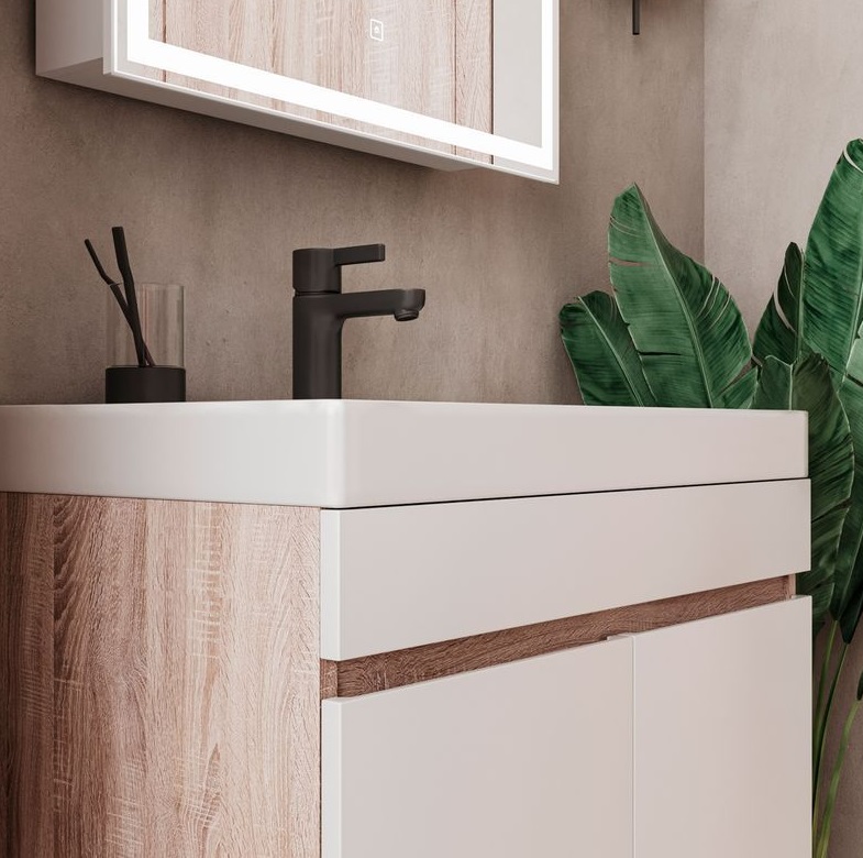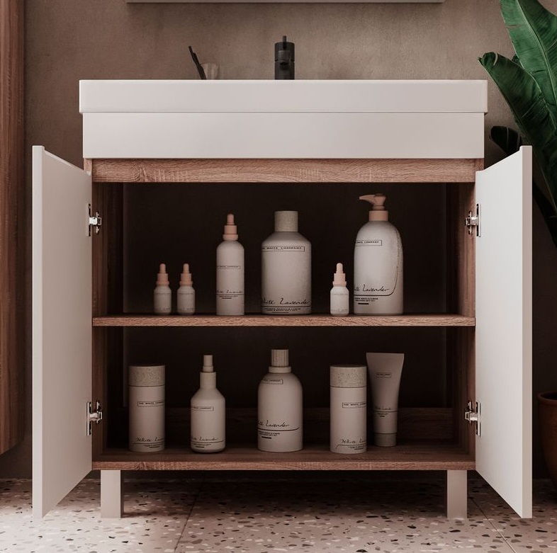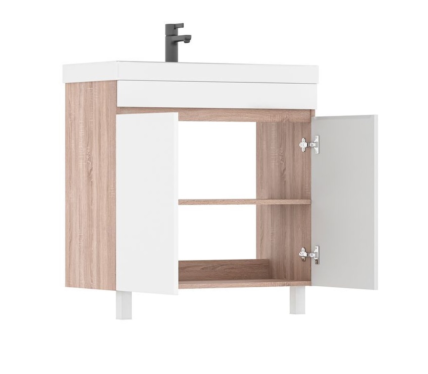 Тумба с раковиной Volna Conty 80 напольный, 2 дверцы, белый, дуб сонома |