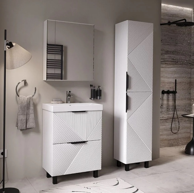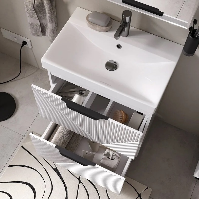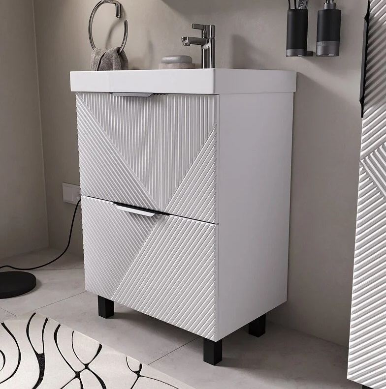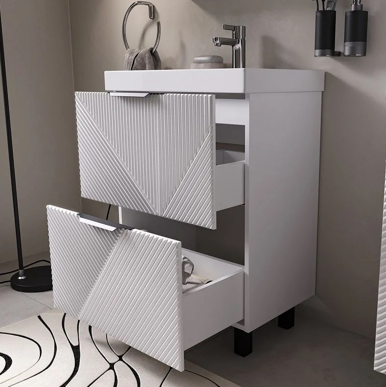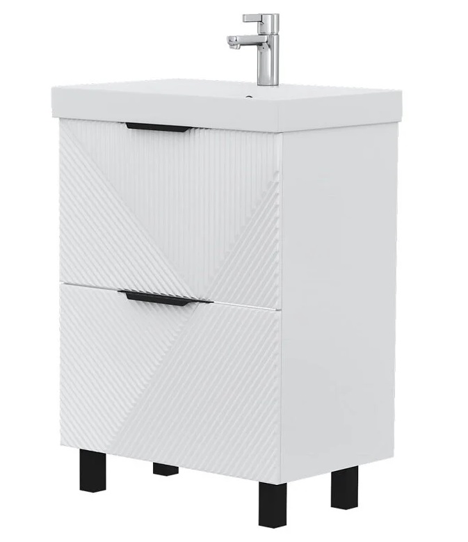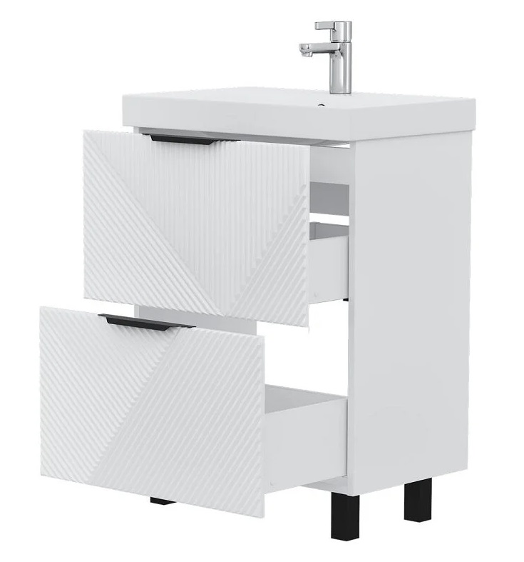 Тумба с раковиной Volna Geometry 60 напольный, 2 ящика, белый